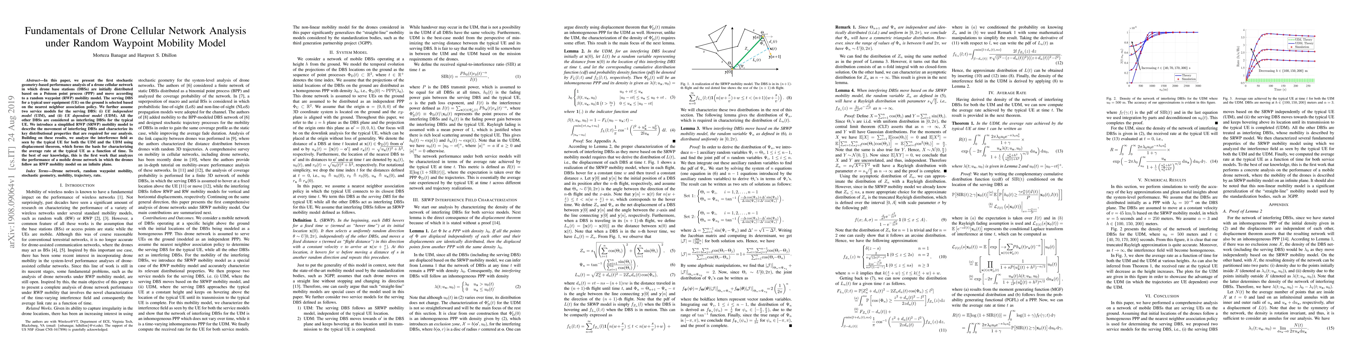 This paper conducts a stochastic geometry-based performance analysis of a drone cellular network where drone base stations (DBSs) follow a random waypoint mobility model. It characterizes the average rate at a typical user equipment (UE) under two service models, using a simplified mobility model for interfering DBSs.