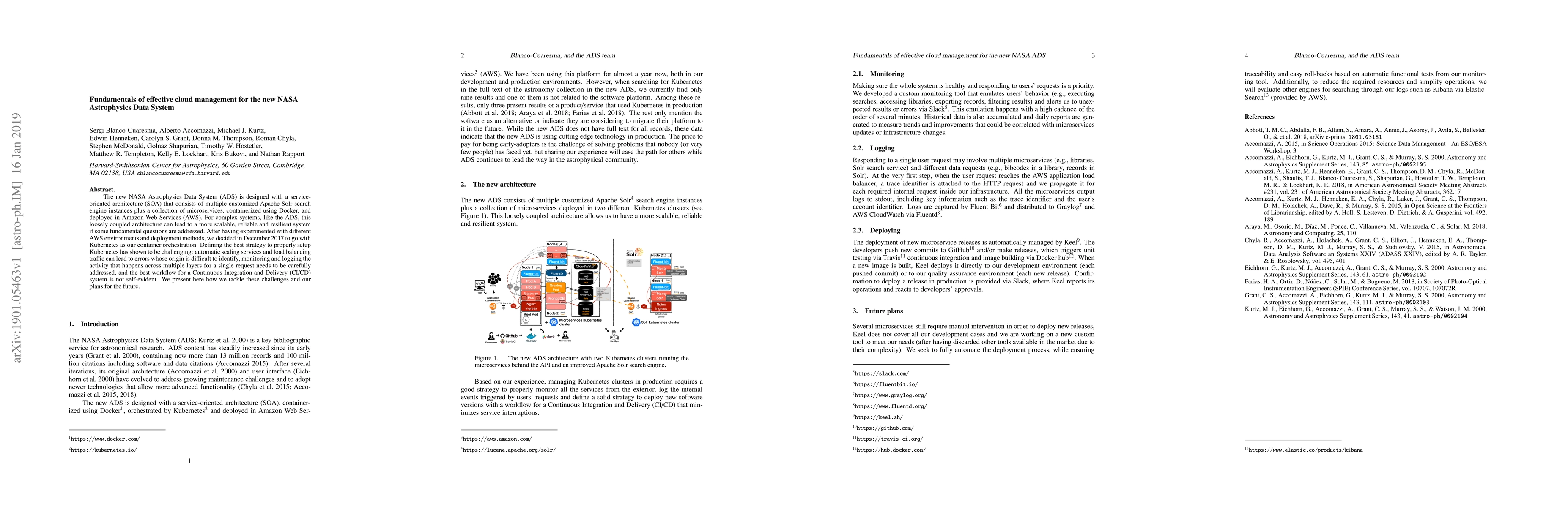 The new NASA Astrophysics Data System uses a service-oriented architecture with Kubernetes for container orchestration, but faces challenges with scaling, monitoring, and CI/CD workflows, which this paper addresses.