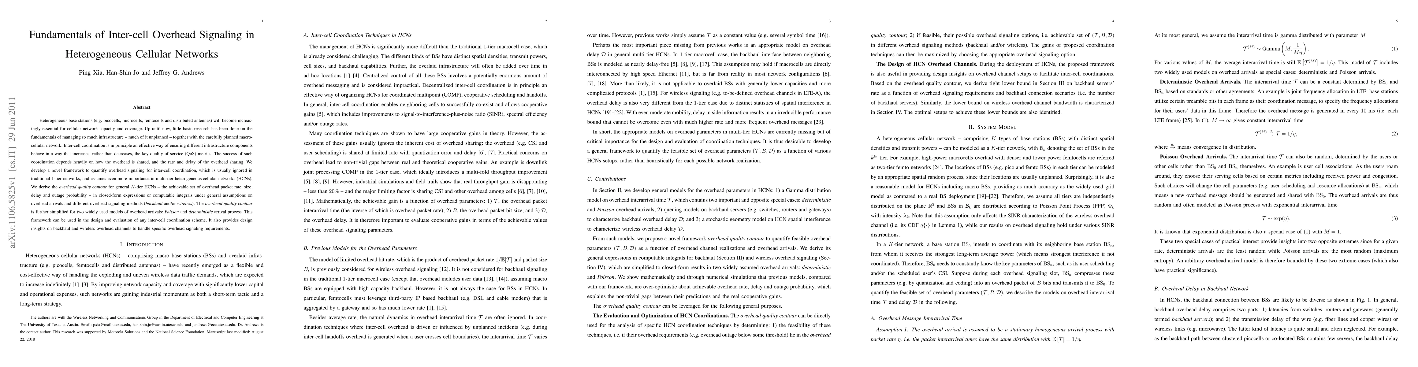 This paper develops a novel framework to quantify inter-cell overhead signaling in heterogeneous cellular networks, focusing on the impact of unplanned infrastructure on network capacity and coverage. It derives closed-form expressions for the overhead quality contour, providing insights into the trade-offs between overhead packet rate, size, delay, and outage probability for multi-tier HCNs.
