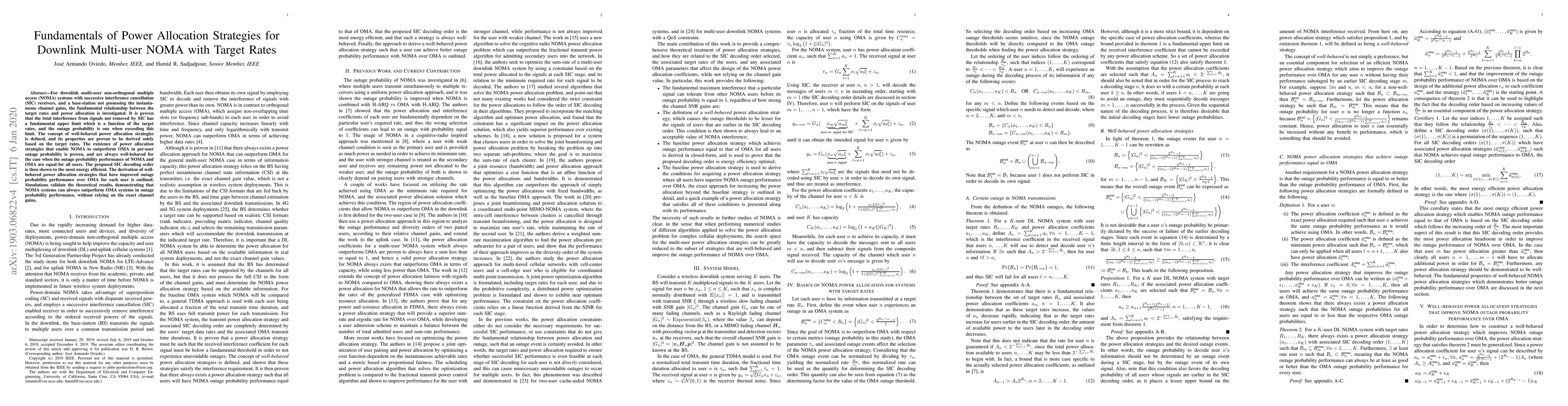 For downlink multi-user non-orthogonal multiple access (NOMA) systems with successive interference cancellation (SIC) receivers, and a base-station not possessing the instantaneous channel gains, the fundamental relationship between the target rates and power allocation is investigated. It is proven that the total interference from signals not removed by SIC has a fundamental upper-limit which is a function of the target rates, and the outage probability is one when exceeding this limit. The concept of well-behaved power allocation strategies is defined, and its properties are proven to be derived solely based on the target rates. The existence of power allocation strategies that enable NOMA to outperform OMA in per-user outage probability is proven, and are always well-behaved for the case when the outage probability performance of NOMA and OMA are equal for all users. The proposed SIC decoding order is then shown to the most energy efficient. The derivation of well-behaved power allocation strategies that have improved outage probability performance over OMA for each user is outlined. Simulations validate the theoretical results, demonstrating that NOMA systems can always outperform OMA systems in outage probability performance, without relying on the exact channel gains.