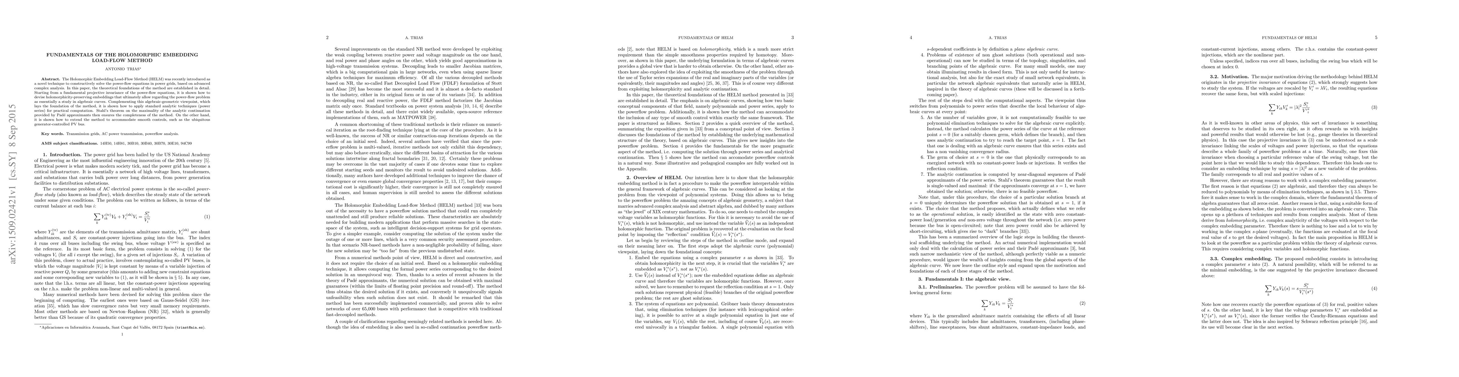 The Holomorphic Embedding Load-Flow Method (HELM) was recently introduced as a novel technique to constructively solve the power-flow equations in power grids, based on advanced complex analysis. In this paper, the theoretical foundations of the method are established in detail. Starting from a fundamental projective invariance of the power-flow equations, it is shown how to devise holomorphicity-preserving embeddings that ultimately allow regarding the power-flow problem as essentially a study in algebraic curves. Complementing this algebraic-geometric viewpoint, which lays the foundation of the method, it is shown how to apply standard analytic techniques (power series) for practical computation. Stahl's theorem on the maximality of the analytic continuation provided by Pad\'e approximants then ensures the completeness of the method. On the other hand, it is shown how to extend the method to accommodate smooth controls, such as the ubiquitous generator-controlled PV bus.