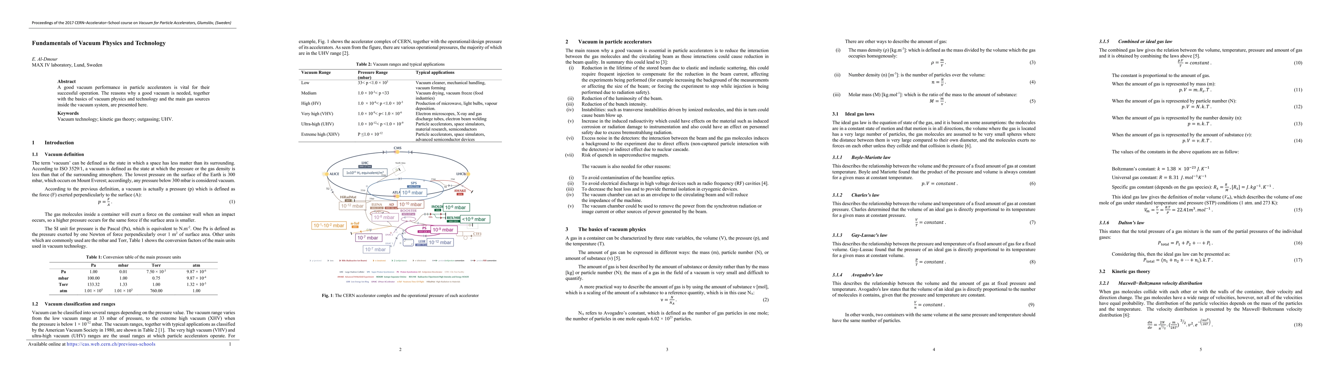 A good vacuum performance in particle accelerators is vital for their successful operation. The reasons why a good vacuum is needed, together with the basics of vacuum physics and technology and the main gas sources inside the vacuum system, are presented here.
