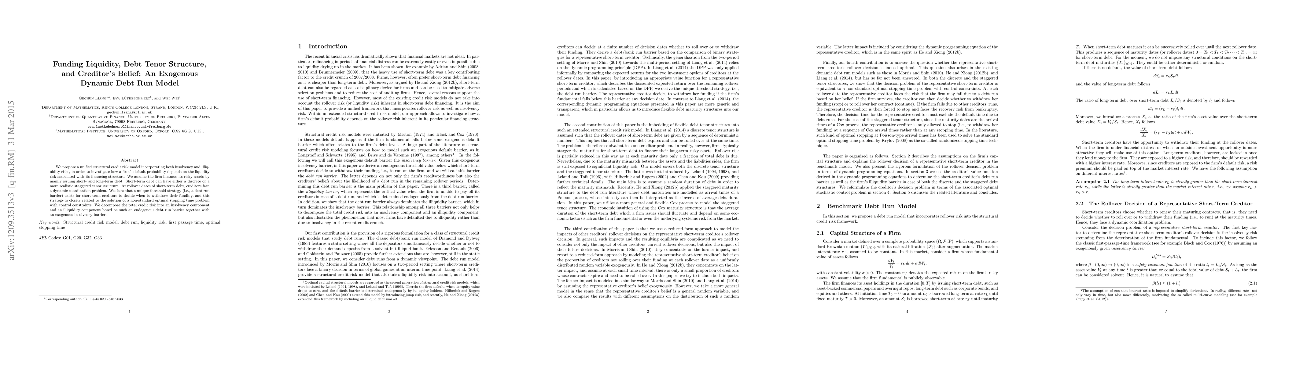 We propose a unified structural credit risk model incorporating both insolvency and illiquidity risks, in order to investigate how a firm's default probability depends on the liquidity risk associated with its financing structure. We assume the firm finances its risky assets by mainly issuing short- and long-term debt. Short-term debt can have either a discrete or a more realistic staggered tenor structure. At rollover dates of short-term debt, creditors face a dynamic coordination problem. We show that a unique threshold strategy (i.e., a debt run barrier) exists for short-term creditors to decide when to withdraw their funding, and this strategy is closely related to the solution of a non-standard optimal stopping time problem with control constraints. We decompose the total credit risk into an insolvency component and an illiquidity component based on such an endogenous debt run barrier together with an exogenous insolvency barrier.