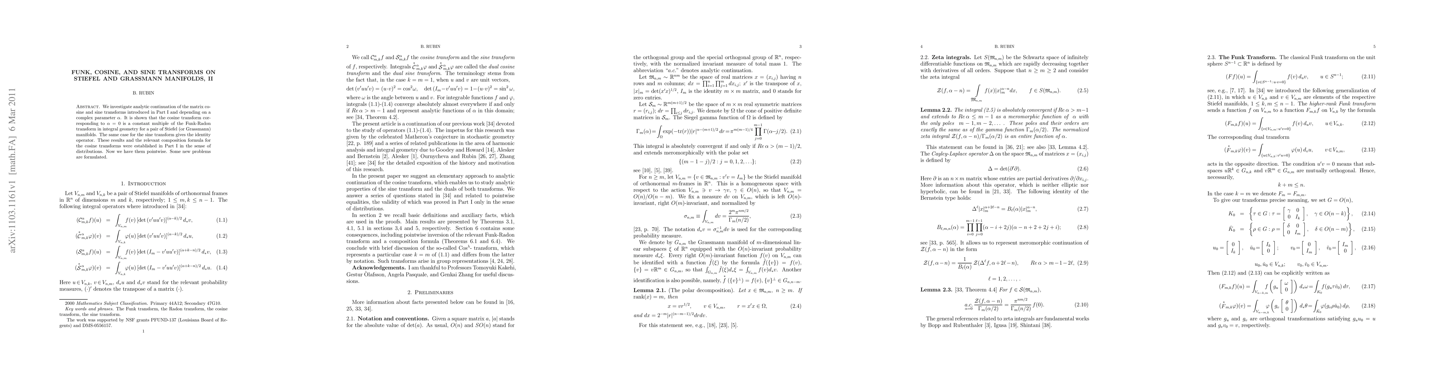 The paper presents pointwise analytic continuation results for cosine and sine transforms on Stiefel and Grassmann manifolds, along with a composition formula, extending previous distribution-sense results from Part I.