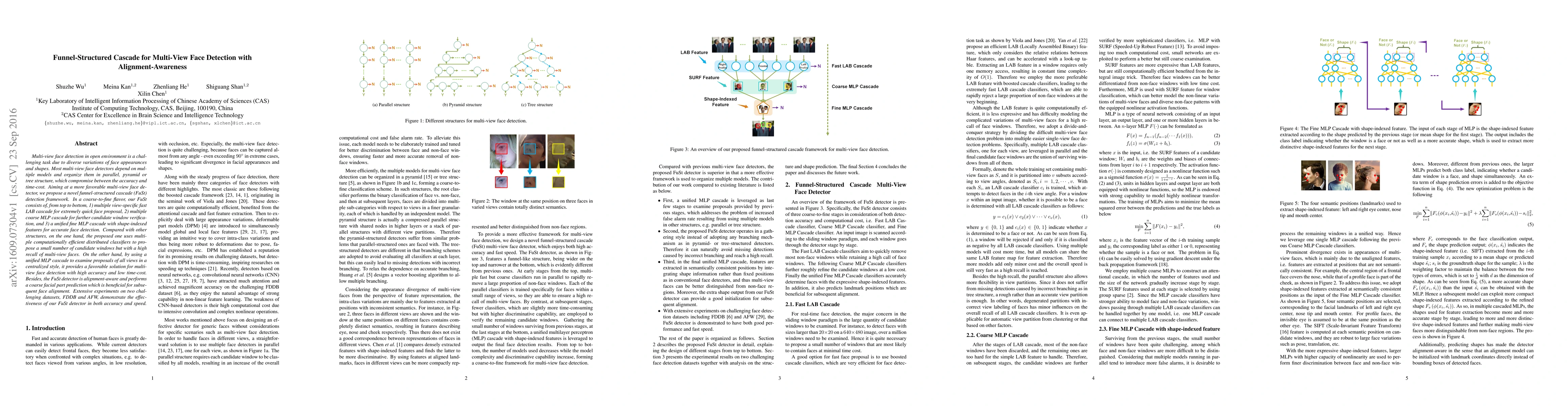 The paper proposes a novel funnel-structured cascade (FuSt) detection framework for multi-view face detection, which uses a coarse-to-fine approach to achieve high accuracy and low time-cost. The FuSt detector combines multiple view-specific fast cascades and a unified fine MLP cascade, demonstrating effectiveness on FDDB and AFW datasets.