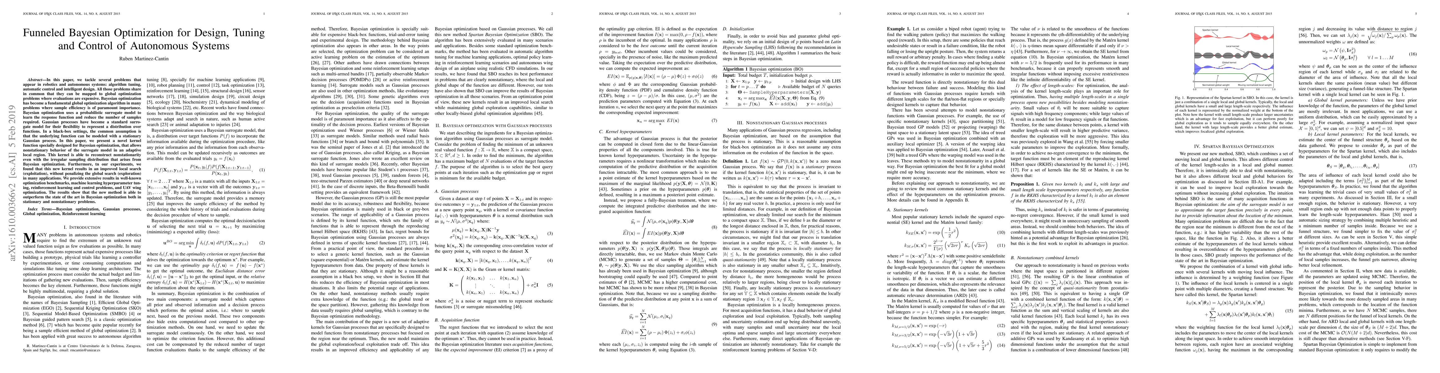This paper introduces a novel funneled Bayesian optimization method tailored for tuning, control, and design in autonomous systems. The proposed kernel function enhances local search efficiency without compromising global search, outperforming existing methods in both stationary and nonstationary optimization problems.