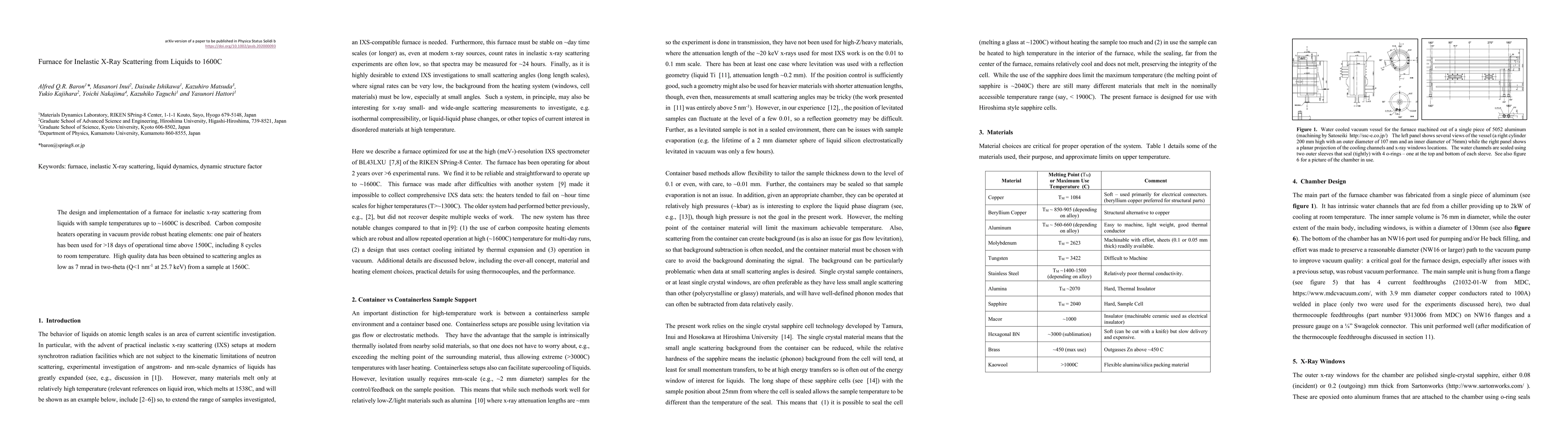A furnace was designed to heat liquids up to 1600C, allowing for high-quality inelastic x-ray scattering data to be collected with robust heating elements that operated for over 18 days at temperatures above 1500C.