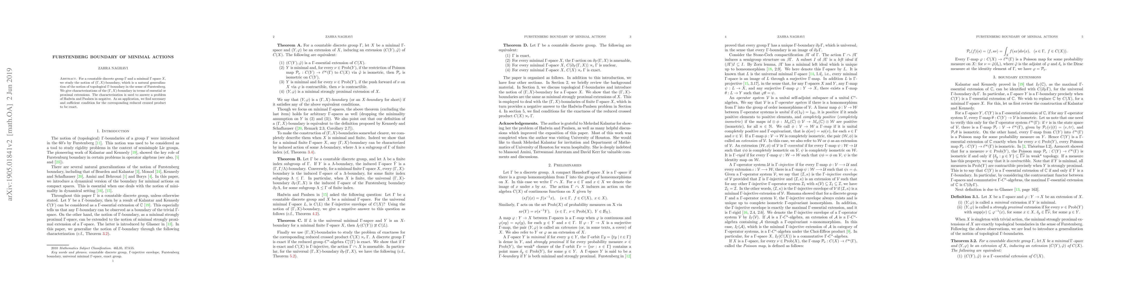 For a countable discrete group {\Gamma} and a minimal {\Gamma}-space X, we study the notion of ({\Gamma}, X)-boundary, which is a natural generalization of the notion of topological {\Gamma}-boundary in the sense of Furstenberg. We give characterizations of the ({\Gamma}, X)-boundary in terms of essential or proximal extensions. The characterization is used to answer a problem of Hadwin and Paulsen in negative. As an application, we find necessary and sufficient condition for the corresponding reduced crossed product to be exact.