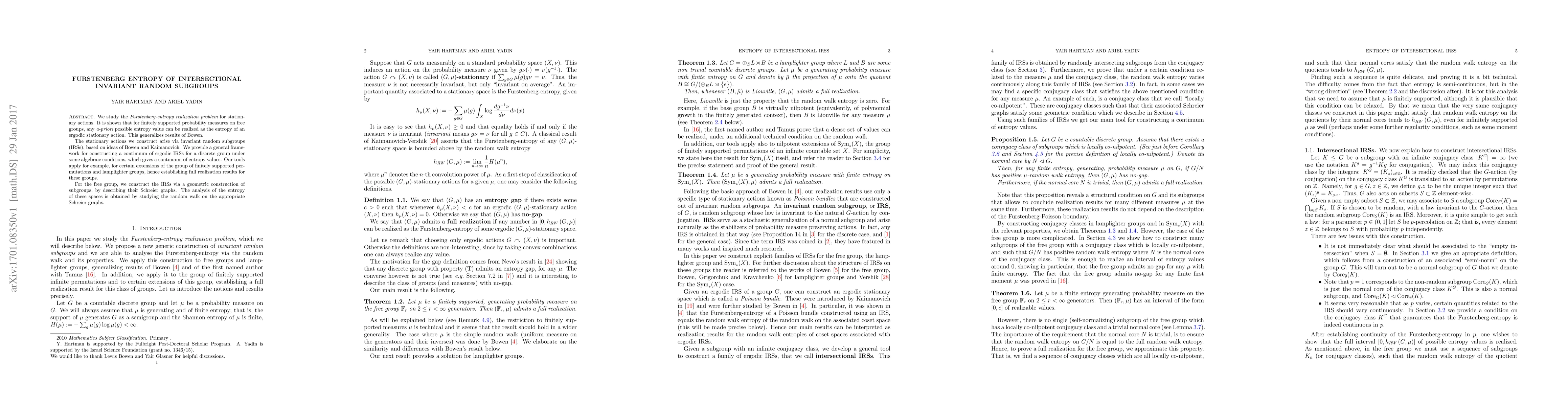 This paper explores the Furstenberg entropy of invariant random subgroups in free groups, demonstrating that any possible entropy value can be realized through ergodic stationary actions. It constructs a continuum of such subgroups using geometric and algebraic methods, providing full entropy realization for specific groups like finitely supported permutations and lamplighter groups.
