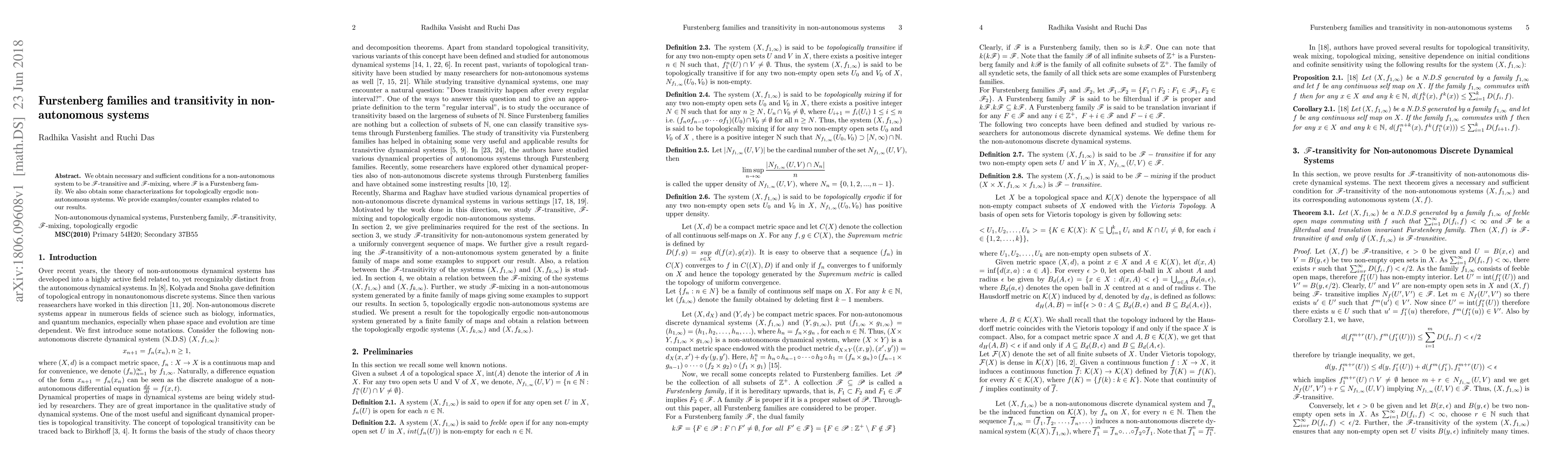 This paper establishes necessary and sufficient conditions for non-autonomous systems to exhibit $\mathcal{F}$-transitivity and $\mathcal{F}$-mixing, using Furstenberg families, and characterizes topologically ergodic systems, supplemented with relevant examples and counterexamples.