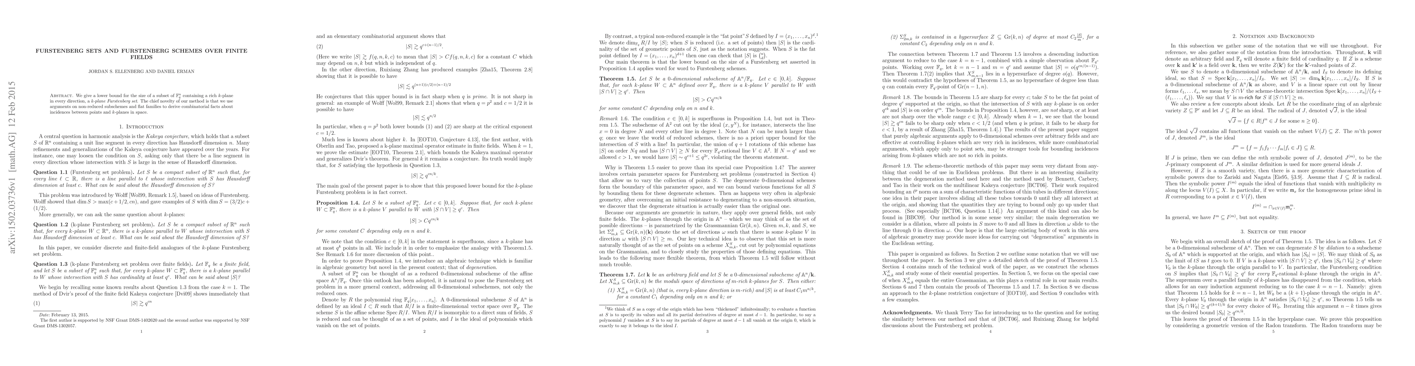 We give a lower bound for the size of a subset of $\mathbb F_q^n$ containing a rich k-plane in every direction, a k-plane Furstenberg set. The chief novelty of our method is that we use arguments on non-reduced subschemes and flat families to derive combinatorial facts about incidences between points and k-planes in space.