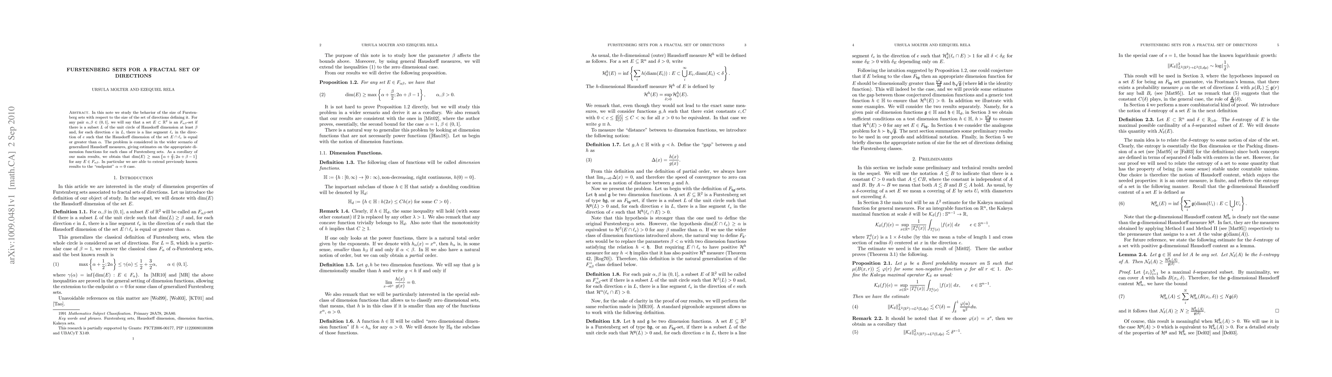 The paper introduces a novel approach to estimating the dimension of Furstenberg sets defined by fractal sets of directions, using generalized Hausdorff measures and dimension functions.