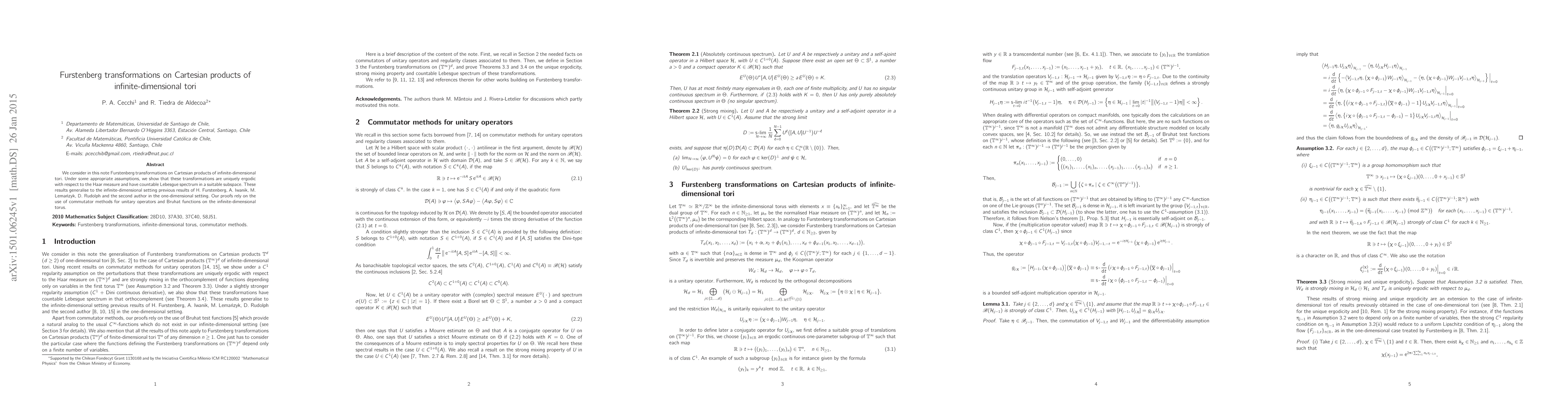 This paper studies Furstenberg transformations on Cartesian products of infinite-dimensional tori, proving they are uniquely ergodic and have countable Lebesgue spectrum under certain conditions. The results extend previous findings in the one-dimensional case using commutator methods and Bruhat functions.