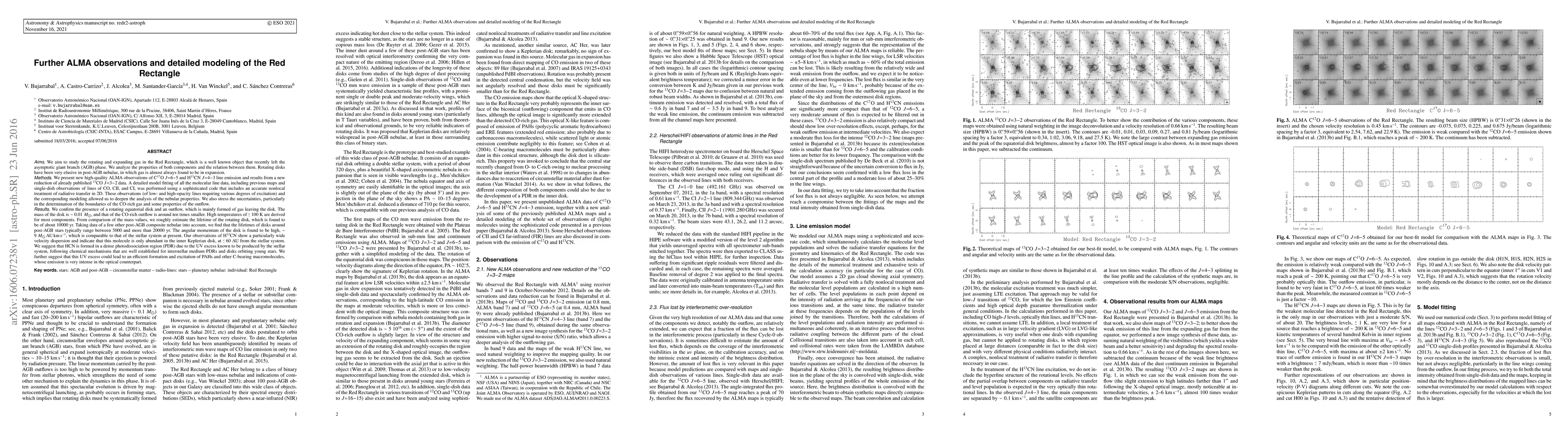 We present new high-quality ALMA observations of the Red Rectangle (a well known post-AGB object) in C17O J=6-5 and H13CN J=4-3 line emission and results from a new reduction of already published 13CO J=3-2 data. A detailed model fitting of all the molecular line data, including previous maps and single-dish spectra, was performed using a sophisticated code. These observations and the corresponding modeling allowed us to deepen the analysis of the nebular properties. We also stress the uncertainties in the model fitting. We confirm the presence of a rotating equatorial disk and an outflow, which is mainly formed of gas leaving the disk. The mass of the disk is ~ 0.01 Mo, and that of the CO-rich outflow is ~ 10 times smaller. High temperatures of ~ 100 K are derived for most components. From comparison of the mass values, we roughly estimate the lifetime of the rotating disk, which is found to be of about 10000 yr. Taking data of a few other post-AGB composite nebulae into account, we find that the lifetimes of disks around post-AGB stars typically range between 5000 and more than 20000 yr. The angular momentum of the disk is found to be high, ~ 9 Mo AU km/s, which is comparable to that of the stellar system at present. Our observations of H13CN show a particularly wide velocity dispersion and indicate that this molecule is only abundant in the inner Keplerian disk, at ~ 60 AU from the stellar system. We suggest that HCN is formed in a dense photodissociation region (PDR) due to the UV excess known to be produced by the stellar system, following chemical mechanisms that are well established for interstellar medium PDRs and disks orbiting young stars. We further suggest that this UV excess could lead to the efficient formation and excitation of PAHs and other C-bearing macromolecules, whose emission is very intense in the optical counterpart.