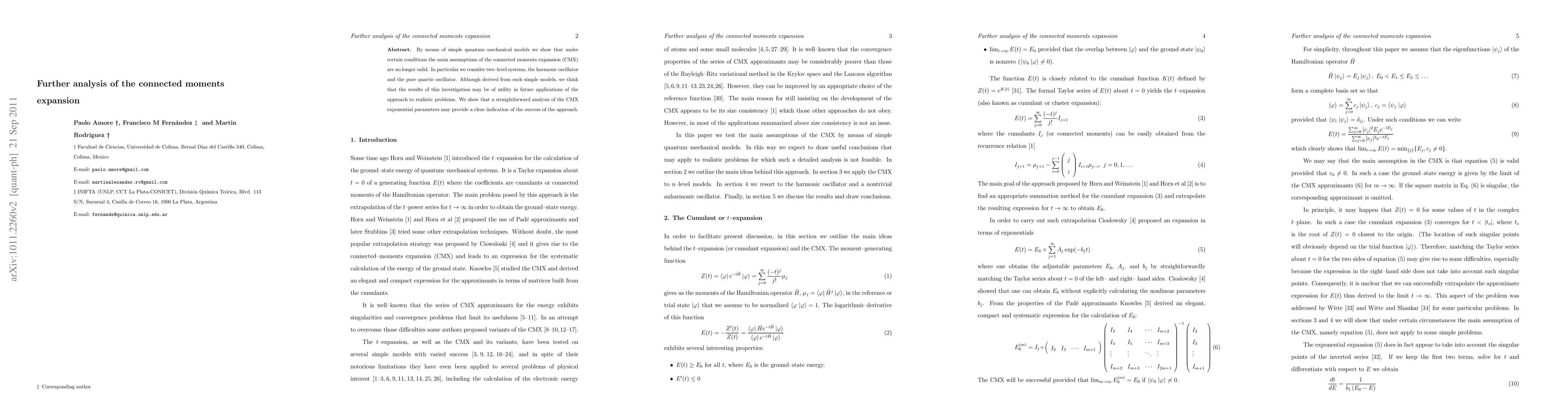 We apply the connected moments expansion to simple quantum--mechanical examples and show that under some conditions the main equations of the approach are no longer valid. In particular we consider two--level systems, the harmonic oscillator and the pure quartic oscillator.
