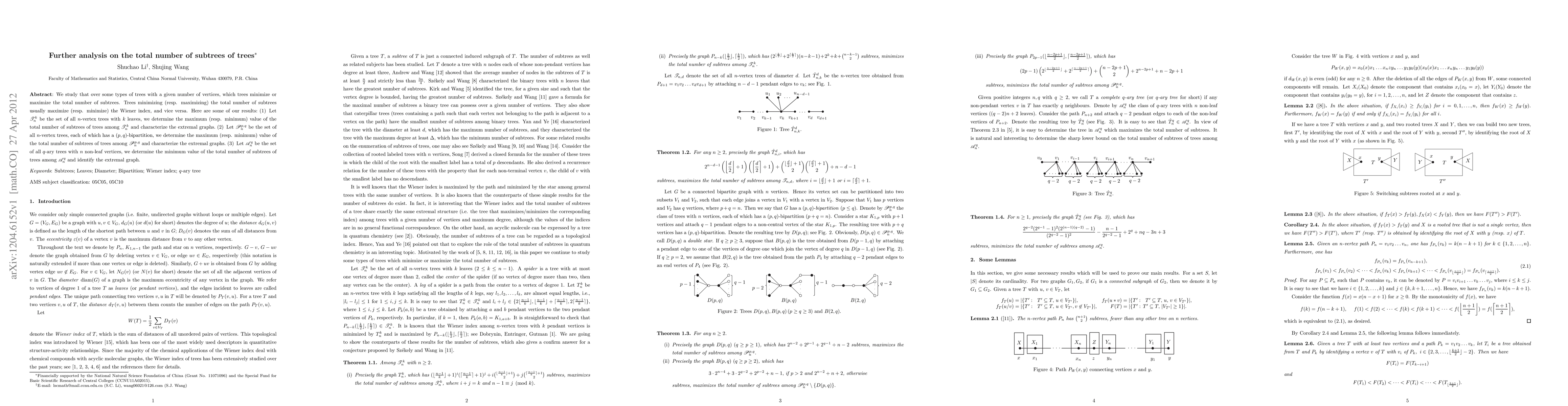 This paper investigates trees with a fixed number of vertices that either minimize or maximize the total number of subtrees, relating these properties to the Wiener index. The study determines extremal values and characterizes the corresponding trees for various tree sets, including those with specific leaf counts, bipartitions, and q-ary structures.