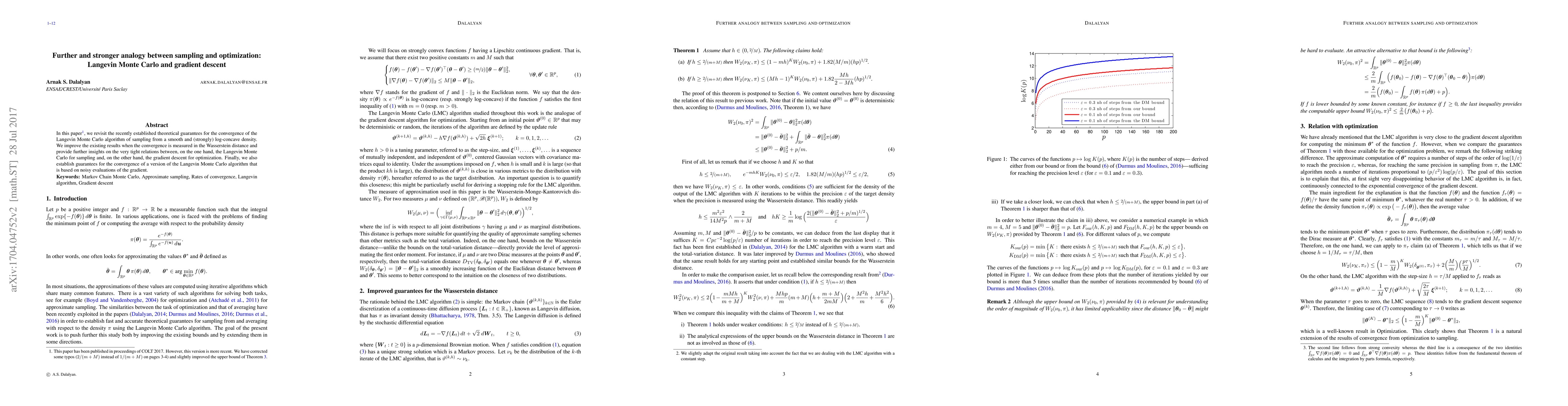 In this paper, we revisit the recently established theoretical guarantees for the convergence of the Langevin Monte Carlo algorithm of sampling from a smooth and (strongly) log-concave density. We improve the existing results when the convergence is measured in the Wasserstein distance and provide further insights on the very tight relations between, on the one hand, the Langevin Monte Carlo for sampling and, on the other hand, the gradient descent for optimization. Finally, we also establish guarantees for the convergence of a version of the Langevin Monte Carlo algorithm that is based on noisy evaluations of the gradient.