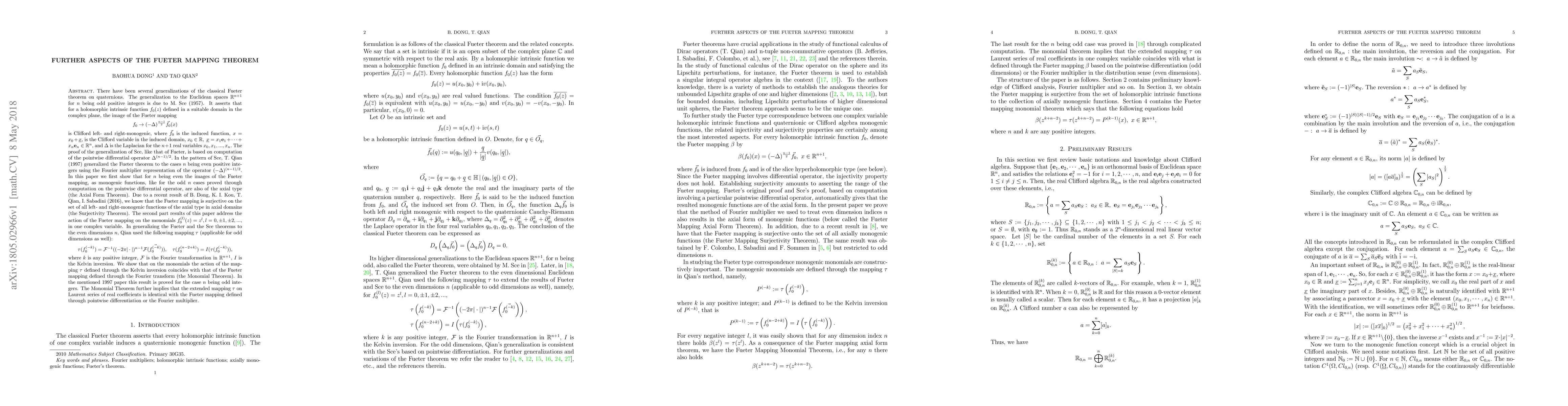 In this paper we first show that for $n$ being even the images of the Fueter mapping, as monogenic functions, like for the odd $n$ cases proved through computation on the pointwise differential operator, are also of the axial type (the Axial Form Theorem). Due to a recent result of B. Dong, K. I. Kou, T. Qian, I. Sabadini (2016), we know that the Fueter mapping is surjective on the set of all left- and right-monogenic functions of the axial type in axial domains (the Surjectivity Theorem). The second part results of this paper address the action of the Fueter mapping on the monomials $f^{(l)}_0(z)=z^l, l=0, \pm 1, \pm 2,...,$ in one complex variable. In generalizing the Fueter and the Sce theorems to the even dimensions $n,$ Qian used the following mapping $\tau$ (applicable for odd dimensions as well): $$\tau (f^{(-k)}_0)=\mathcal{F}^{-1}((-2\pi |\cdot |)^{n-1}\mathcal{F}({\vec{f_0^{(-k)}}})), \ \ \ \tau (f^{(n-2+k)}_0)=I(\tau (f^{(-k)}_0)), $$ where $k$ is any positive integer, $\mathcal{F}$ is the Fourier transformation in $\mathbb{R}^{n+1},$ $I$ is the Kelvin inversion. We show that on the monomials the action of the mapping $\tau$ defined through the Kelvin inversion coincides with that of the Fueter mapping defined through the Fourier transform (the Monomial Theorem). In the mentioned 1997 paper this result is proved for the case $n$ being odd integers. The Monomial Theorem further implies that the extended mapping $\tau$ on Laurent series of real coefficients is identical with the Fueter mapping defined through pointwise differentiation or the Fourier multiplier.