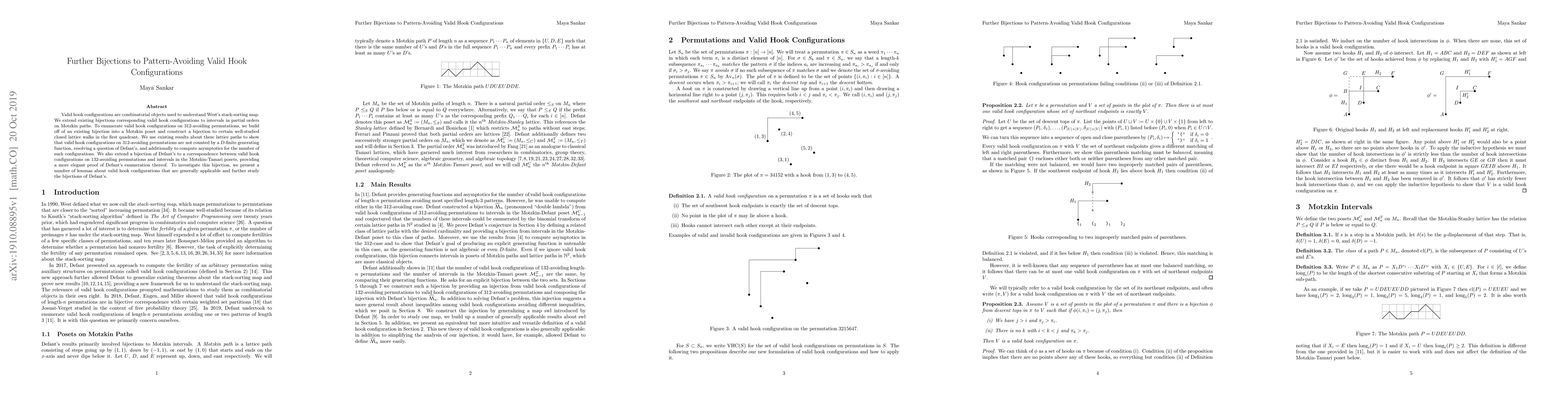 Valid hook configurations are combinatorial objects used to understand West's stack-sorting map. We extend existing bijections corresponding valid hook configurations to intervals in partial orders on Motzkin paths. To enumerate valid hook configurations on $312$-avoiding permutations, we build off of an existing bijection into a Motzkin poset and construct a bijection to certain well-studied closed lattice walks in the first quadrant. We use existing results about these lattice paths to show that valid hook configurations on $312$-avoiding permutations are not counted by a $D$-finite generating function, resolving a question of Defant's, and additionally to compute asymptotics for the number of such configurations. We also extend a bijection of Defant's to a correspondence between valid hook configurations on $132$-avoiding permutations and intervals in the Motzkin-Tamari posets, providing a more elegant proof of Defant's enumeration thereof. To investigate this bijection, we present a number of lemmas about valid hook configurations that are generally applicable and further study the bijections of Defant's.