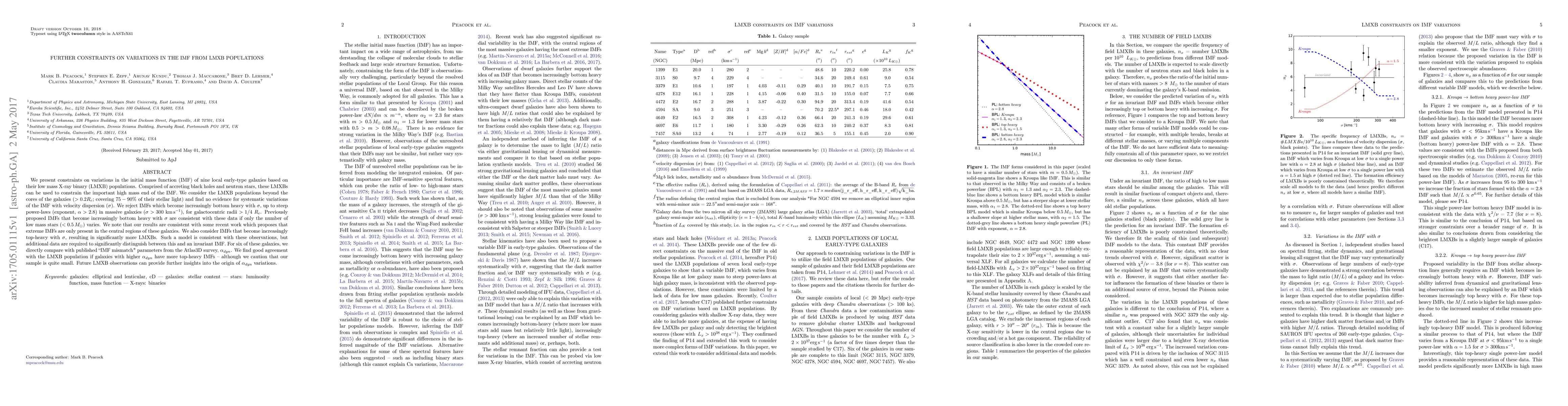 Research constraints LMXB populations to study variations in initial mass function (IMF) of early-type galaxies, finding no evidence for systematic IMF variation with velocity dispersion, and consistent results with some recent work suggesting extreme IMFs are only present in galaxy centers.