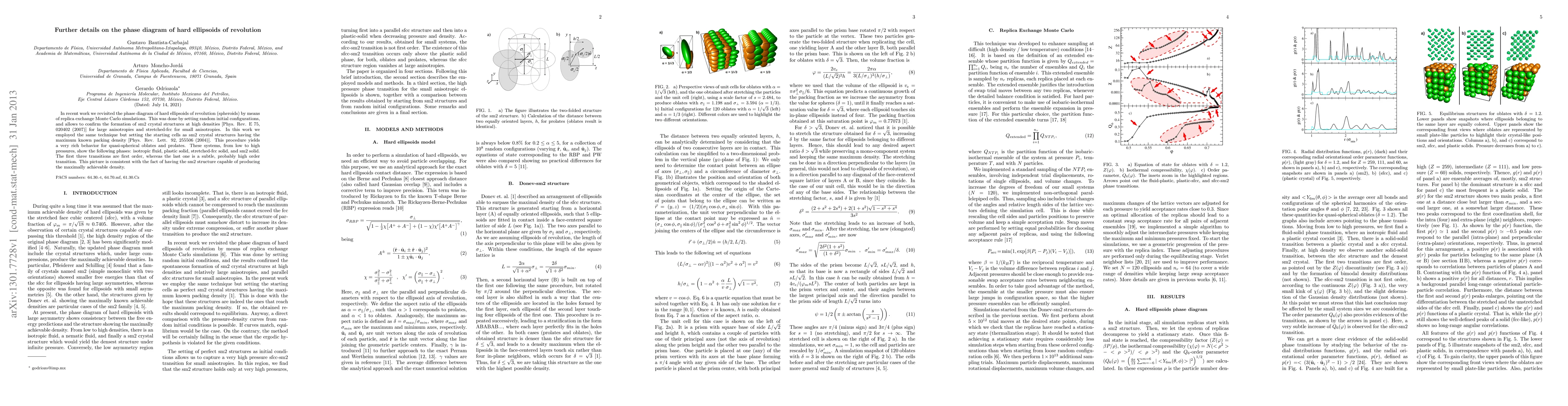 Researchers used a simulation method to study the phase behavior of hard ellipsoids of revolution under high pressure, discovering multiple phases including fluid, solid, and crystal structures with varying densities.