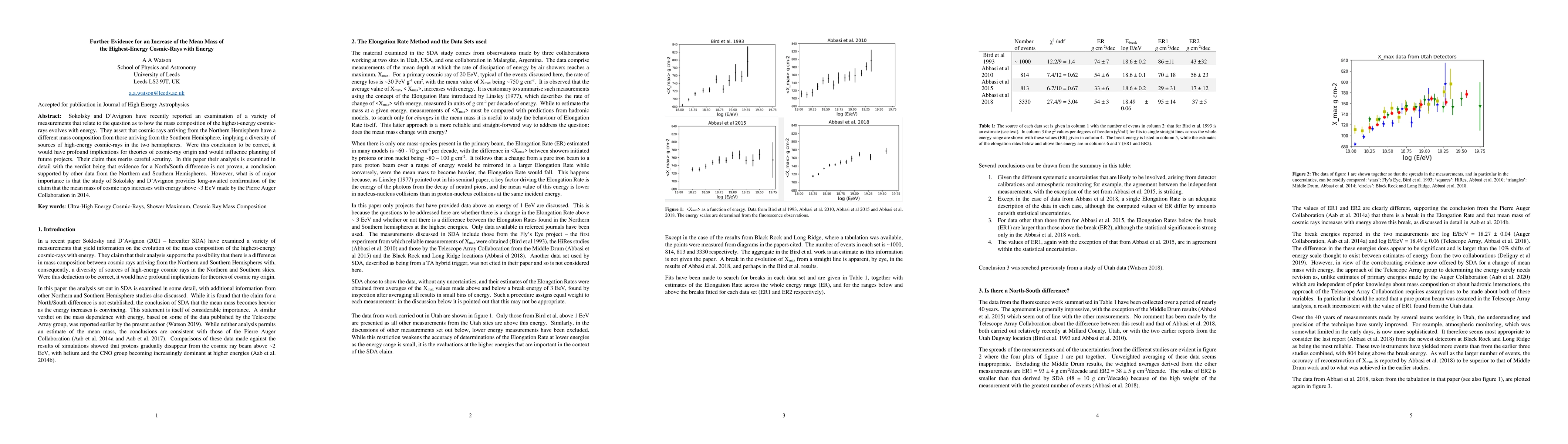 Sokolsky and D_Avignon have recently reported an examination of a variety of measurements that relate to the question as to how the mass composition of the highest-energy cosmic-rays evolves with energy. They assert that cosmic rays arriving from the Northern Hemisphere have a different mass composition from those arriving from the Southern Hemisphere, implying a diversity of sources of high-energy cosmic-rays in the two hemispheres. Were this conclusion to be correct, it would have profound implications for theories of cosmic-ray origin and would influence planning of future projects. Their claim thus merits careful scrutiny. In this paper their analysis is examined in detail with the verdict being that evidence for a North/South difference is not proven, a conclusion supported by other data from the Northern and Southern Hemispheres. However, what is of major importance is that the study of Sokolsky and D_Avignon provides long-awaited confirmation of the claim that the mean mass of cosmic rays increases with energy above ~3 E eV made by the Pierre Auger Collaboration in 2014.