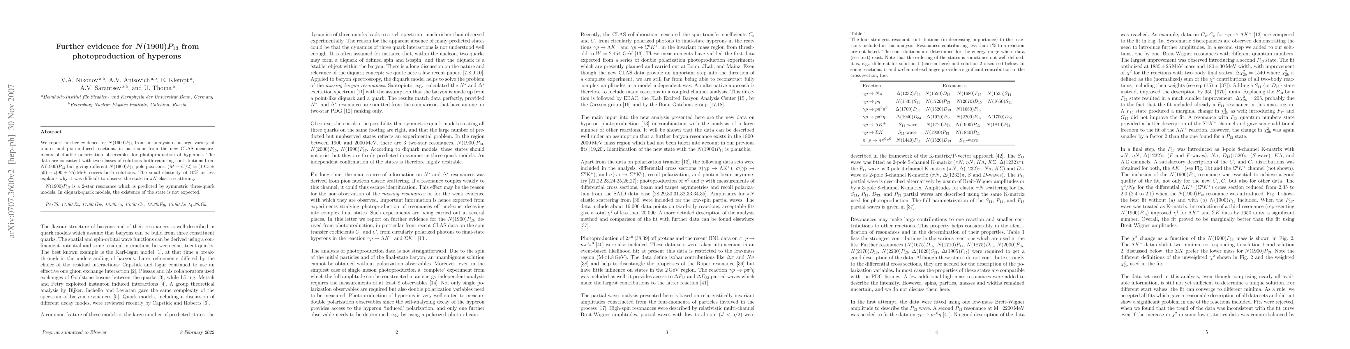Researchers found evidence for the $N(1900)P_{13}$ resonance in photoproduction of hyperons, a 2-star predicted state in three-quark models but not diquark-quark ones.