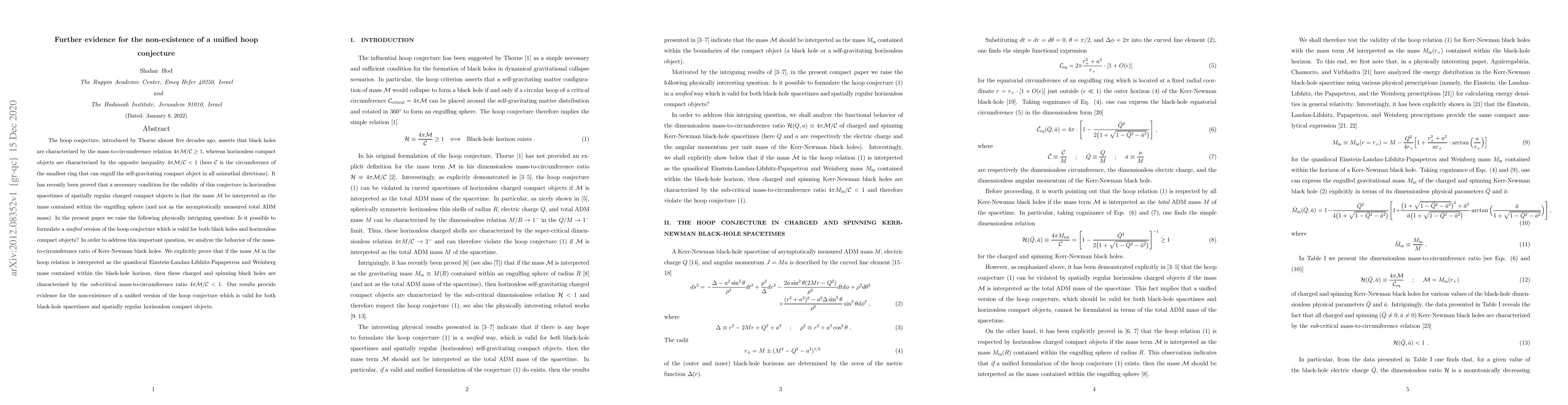 The hoop conjecture, introduced by Thorne almost five decades ago, asserts that black holes are characterized by the mass-to-circumference relation $4\pi {\cal M}/{\cal C}\geq1$, whereas horizonless compact objects are characterized by the opposite inequality $4\pi {\cal M}/{\cal C}<1$ (here ${\cal C}$ is the circumference of the smallest ring that can engulf the self-gravitating compact object in all azimuthal directions). It has recently been proved that a necessary condition for the validity of this conjecture in horizonless spacetimes of spatially regular charged compact objects is that the mass ${\cal M}$ be interpreted as the mass contained within the engulfing sphere (and not as the asymptotically measured total ADM mass). In the present paper we raise the following physically intriguing question: Is it possible to formulate a unified version of the hoop conjecture which is valid for both black holes and horizonless compact objects? In order to address this important question, we analyze the behavior of the mass-to-circumference ratio of Kerr-Newman black holes. We explicitly prove that if the mass ${\cal M}$ in the hoop relation is interpreted as the quasilocal Einstein-Landau-Lifshitz-Papapetrou and Weinberg mass contained within the black-hole horizon, then these charged and spinning black holes are characterized by the sub-critical mass-to-circumference ratio $4\pi {\cal M}/{\cal C}<1$. Our results provide evidence for the non-existence of a unified version of the hoop conjecture which is valid for both black-hole spacetimes and spatially regular horizonless compact objects.