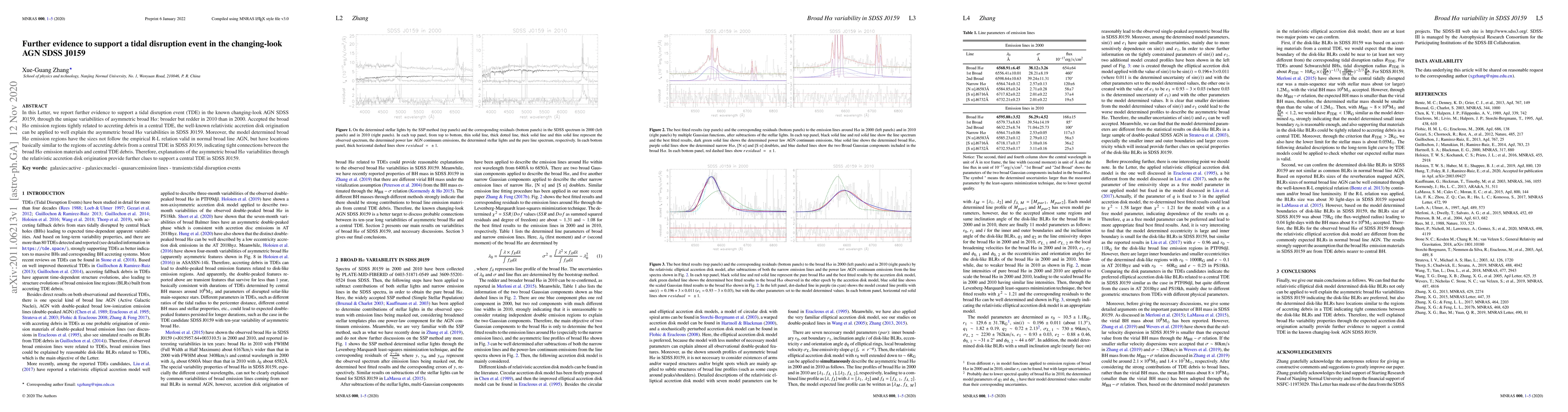 This paper provides further evidence for a tidal disruption event (TDE) in the changing-look AGN SDSS J0159, noting unique asymmetric broad H$\alpha$ variabilities. The study concludes that these variations support a central TDE, as the broad H$\alpha$ emission regions do not follow typical AGN relations but align with TDE debris.