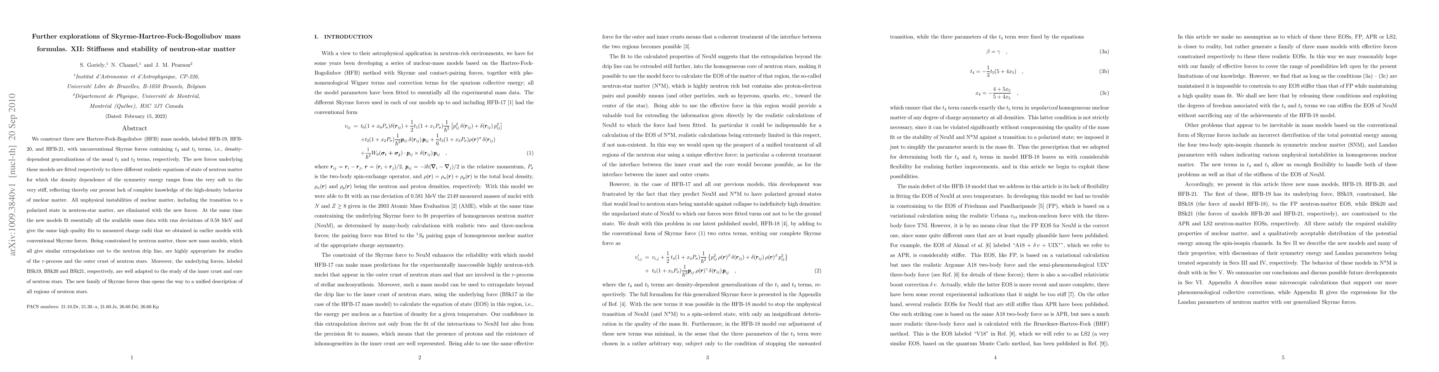 This paper introduces three new Hartree-Fock-Bogoliubov mass models with unconventional Skyrme forces, fitting them to various neutron matter equations of state. The new models effectively eliminate instabilities and provide high-quality fits to mass data and charge radii, suitable for studying neutron star crusts and cores.