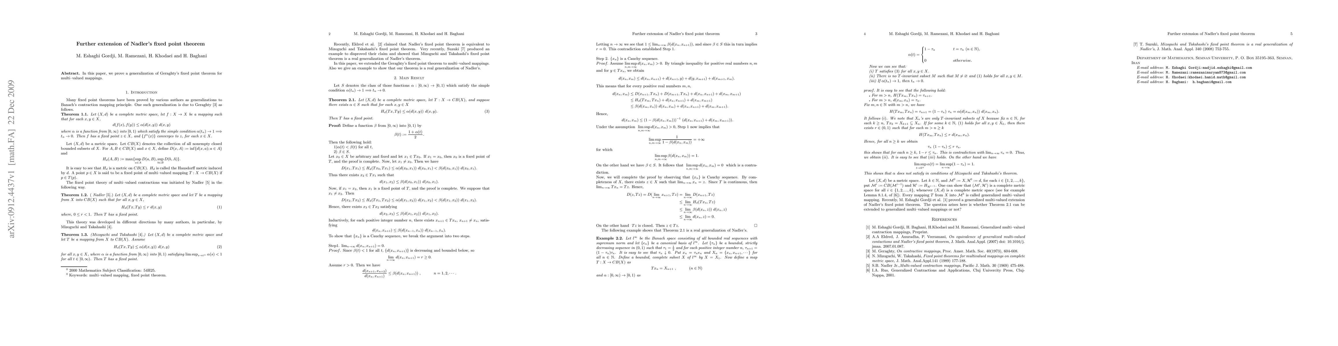 In this paper, we prove a generalization of Geraghty's fixed point theorem for multi--valued mappings.