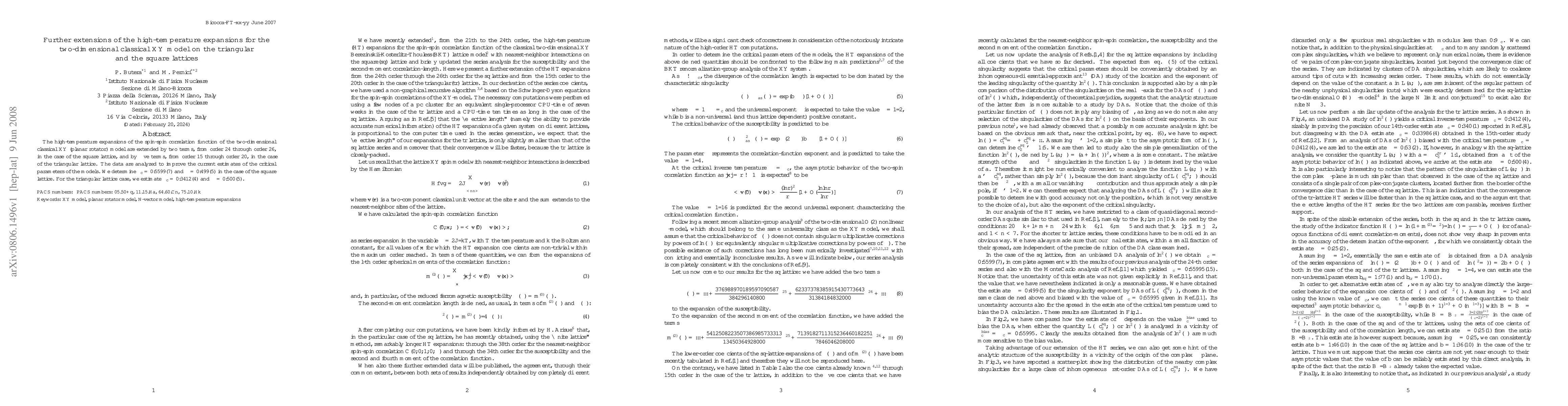 This paper extends high-temperature expansions for the two-dimensional classical XY model on square and triangular lattices, improving estimates of critical parameters through new terms in the expansions. The study focuses on extending the expansions from order 24 to 26 for the square lattice and from 15 to 20 for the triangular lattice.