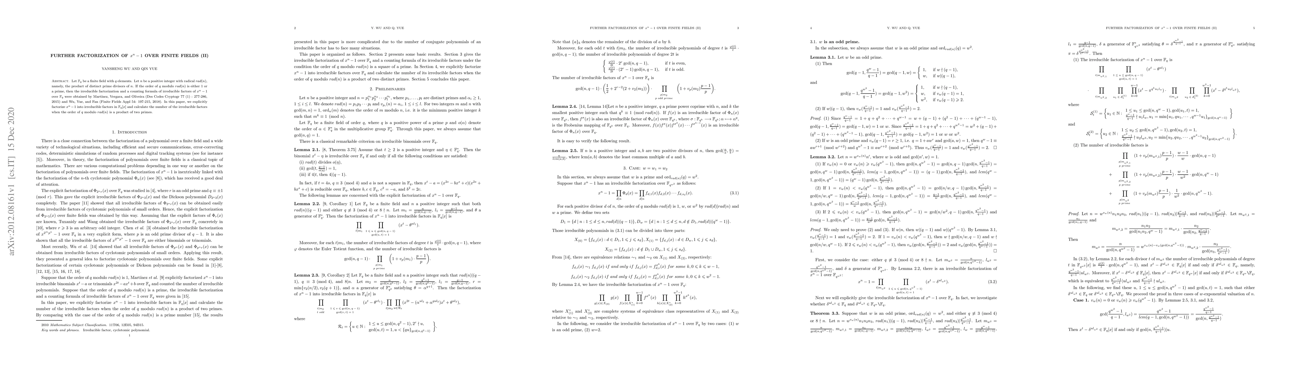 This paper further explores the factorization of $x^n-1$ over finite fields $\Bbb F_q$, extending previous results when the order of $q$ modulo $rad(n)$ is a product of two primes. It provides explicit irreducible factorizations and a counting formula for these cases.