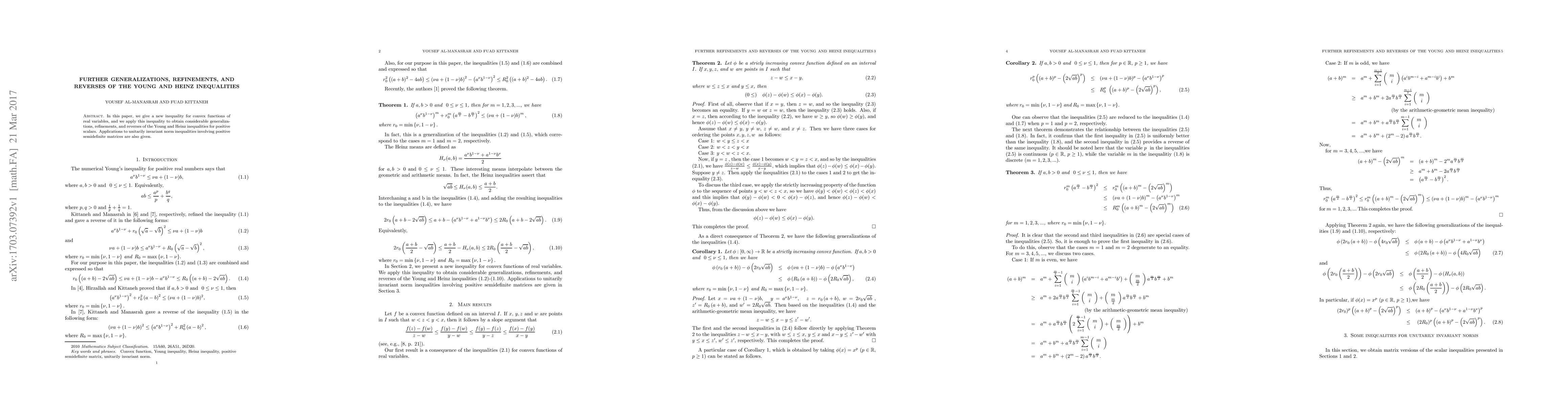 The paper presents new inequalities for convex functions of real variables, applying them to generalize, refine, and reverse the Young and Heinz inequalities for positive scalars, with applications to unitarily invariant norm inequalities involving positive semidefinite matrices.