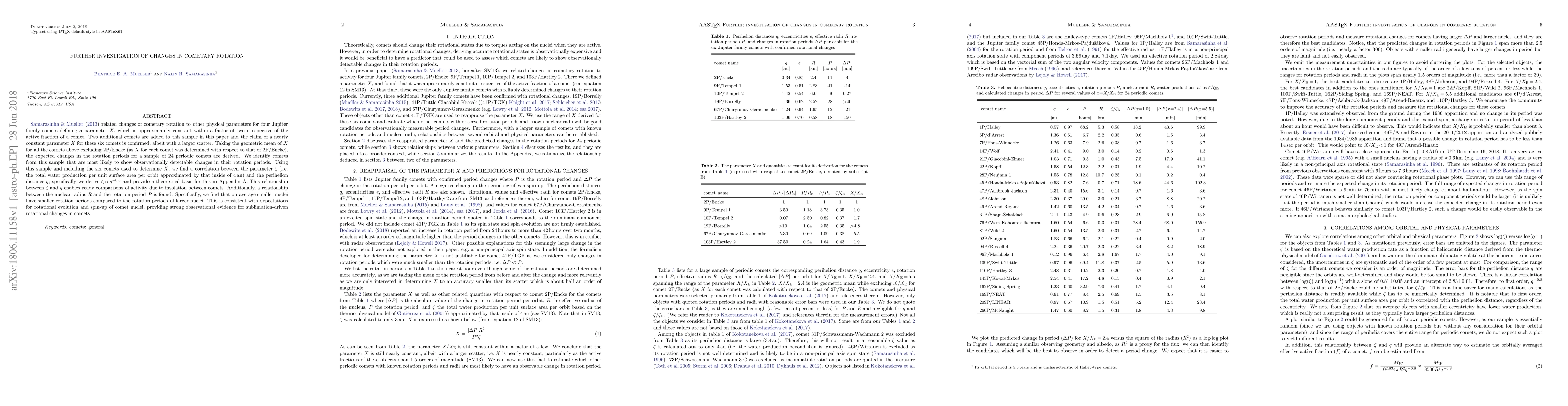 Samarasinha & Mueller (2013) related changes of cometary rotation to other physical parameters for four Jupiter family comets defining a parameter $X$, which is approximately constant within a factor of two irrespective of the active fraction of a comet. Two additional comets are added to this sample in this paper and the claim of a nearly constant parameter $X$ for these six comets is confirmed, albeit with a larger scatter. Taking the geometric mean of $X$ for all the comets above excluding 2P/Encke (as $X$ for each comet was determined with respect to that of 2P/Encke), the expected changes in the rotation periods for a sample of 24 periodic comets are derived. We identify comets from this sample that are most likely to show observationally detectable changes in their rotation periods. Using this sample and including the six comets used to determine $X$, we find a correlation between the parameter $\zeta$ (i.e. the total water production per unit surface area per orbit approximated by that inside of 4 au) and the perihelion distance $q$; specifically we derive $\zeta$ $\propto$ $q^{-0.8}$ and provide a theoretical basis for this in Appendix A. This relationship between $\zeta$ and $q$ enables ready comparisons of activity due to insolation between comets. Additionally, a relationship between the nuclear radius $R$ and the rotation period $P$ is found. Specifically, we find that on average smaller nuclei have smaller rotation periods compared to the rotation periods of larger nuclei. This is consistent with expectations for rotational evolution and spin-up of comet nuclei, providing strong observational evidence for sublimation-driven rotational changes in comets.