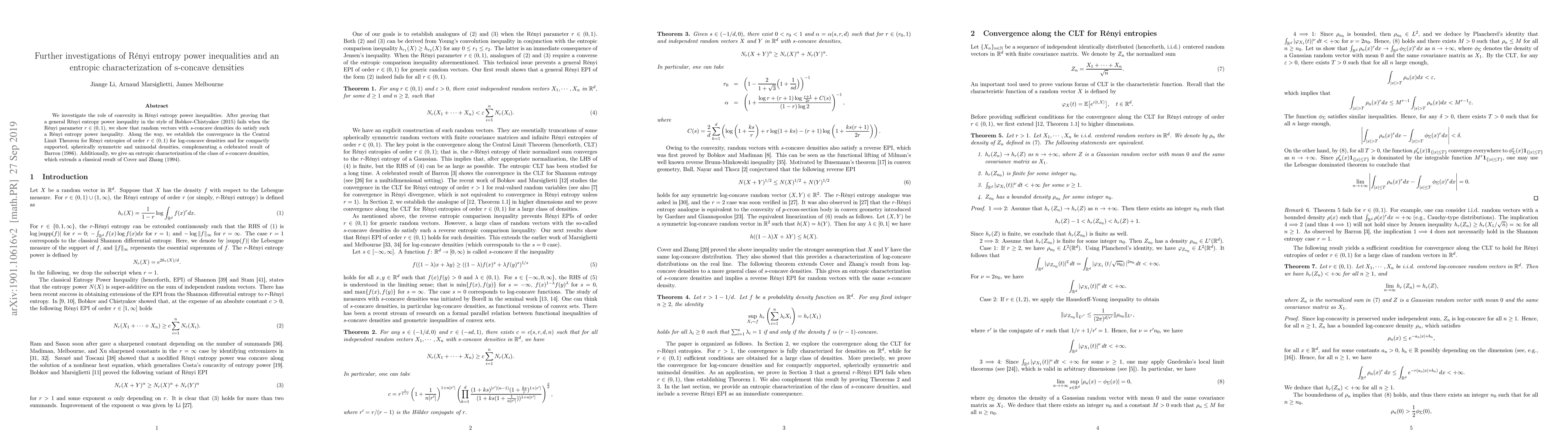 This paper investigates R\'enyi entropy power inequalities, proving that they do not hold for $r\in(0,1)$ in general but do apply to $s$-concave densities. It also extends a convergence result in the Central Limit Theorem for R\'enyi entropies and provides an entropic characterization of $s$-concave densities.