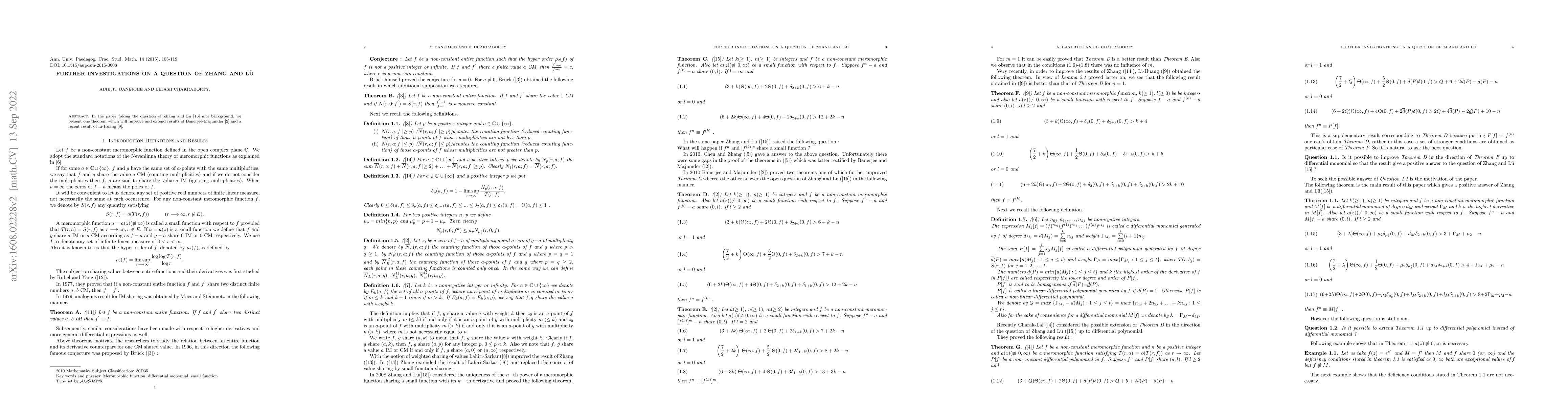 Summary: This paper improves and extends previous findings by Banerjee-Majumder and Li-Huang, presenting a new theorem based on the question posed by Zhang and Lü. The results offer significant advancements in the field.