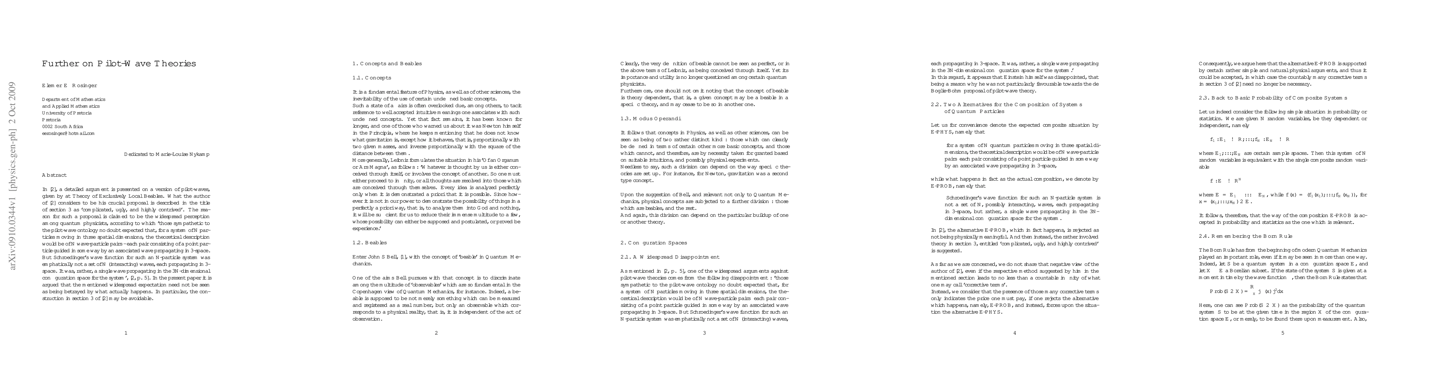 In [2], a detailed argument is presented on a version of pilot-waves, given by at Theory of Exclusively Local Beables. What the author of [2] considers to be his crucial proposal is described in the title of section 3 as 'complicated, ugly, and highly contrived'. The reason for such a proposal is claimed to be the widespread perception among quantum physicists, according to which 'those sympathetic to the pilot-wave ontology no doubt expected that, for a system of N particles moving in three spatial dimensions, the theoretical description would be of N wave-particle pairs - each pair consisting of a point particle guided in some way by an associated wave propagating in 3-space. But Schroedinger's wave function for such an N-particle system was emphatically not a set of N (interacting) waves, each propagating in 3-space. It was, rather, a single wave propagating in the 3N-dimensional configuration space for the system', [2, p. 5]. In the present paper it is argued that the mentioned widespread expectation need not be seen as being betrayed by what actually happens. In particular, the construction in section 3 of [2] may be avoidable.