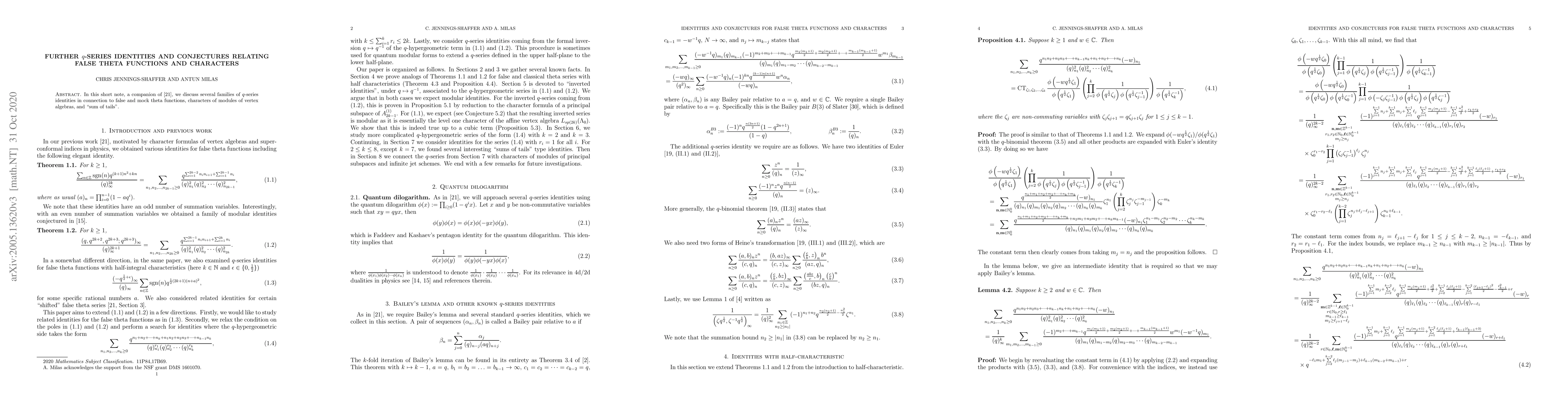 This paper explores new $q$-series identities connected to false and mock theta functions, vertex algebra module characters, and "sum of tails," expanding on previous work. It proposes conjectures linking these mathematical concepts.