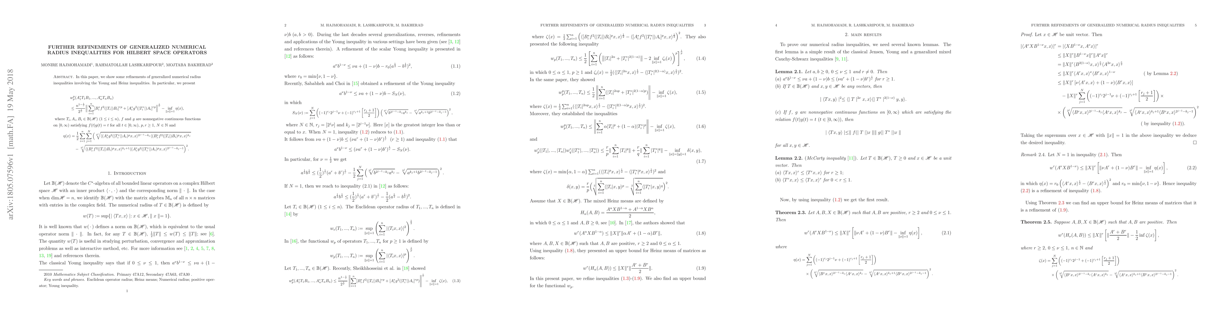 In this paper, we show some refinements of generalized numerical radius inequalities involving the Young and Heinz inequalities. In particular, we present \begin{align*} w_{p}^{p}(A_{1}^{*}T_{1}B_{1},...,A_{n}^{*}T_{n}B_{n})\leq\frac{n^{1-\frac{1}{r}}}{2^{\frac{1}{r}}}\Big\|\sum_{i=1}^{n}[B_{i}^{*} f^{2}(|T_{i}|)B_{i}]^{rp}+[A_{i}^{*}g^{2}(|T_{i}^{*}|)A_{i}]^{rp}\Big\|^{\frac{1}{r}} -\inf_{\|x\|=1}\eta(x), \end{align*} where $T_{i}, A_{i}, B_{i} \in {\mathbb B}({\mathscr H})\,\,(1\leq i\leq n)$, $f$ and $g$ are nonnegative continuous functions on $[0, \infty)$ satisfying $f(t)g(t)=t$ for all $t\in [0, \infty)$, $p, r\geq 1$, $N\in {\mathbb N}$ and \begin{align*} \eta(x)= \frac{1}{2}\sum_{i=1}^{n}\sum_{j=1}^{N} \Big(\sqrt[2^{j}]{ \langle (A_{i}^{*}g^{2}(|T_{i}^{*}|)A_{i})^{p}x, x\rangle^{2^{j-1}-k_{j}} \langle (B_{i}^{*} f^{2}(|T_{i}|)B_{i})^{p}x, x\rangle^{k_j}}\quad-\sqrt[2^{j}]{ \langle (B_{i}^{*}f^{2}(|T_{i}|)B_{i})^{p}x, x\rangle^{k_{j}+1} \langle (A_{i}^{*} g^{2}(|T_{i}^{*}|)A_{i})^{p}x, x\rangle^{2^{j-1}-k_{j}-1}}\Big)^{2}. \end{align*}
