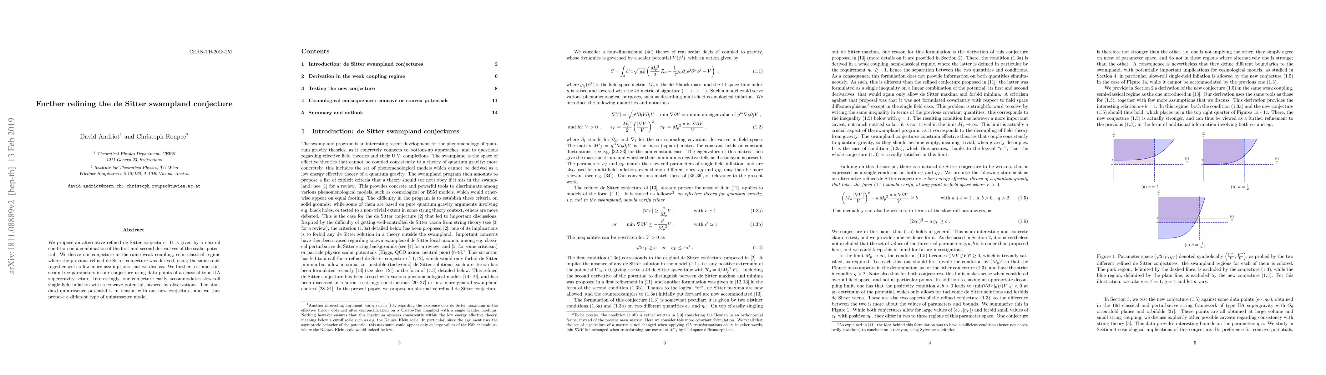 This paper proposes a refined de Sitter conjecture based on scalar potential derivatives, tested against type IIA supergravity data, and finds that it accommodates observed slow-roll inflation while challenging standard quintessence models, suggesting a new quintessence model.