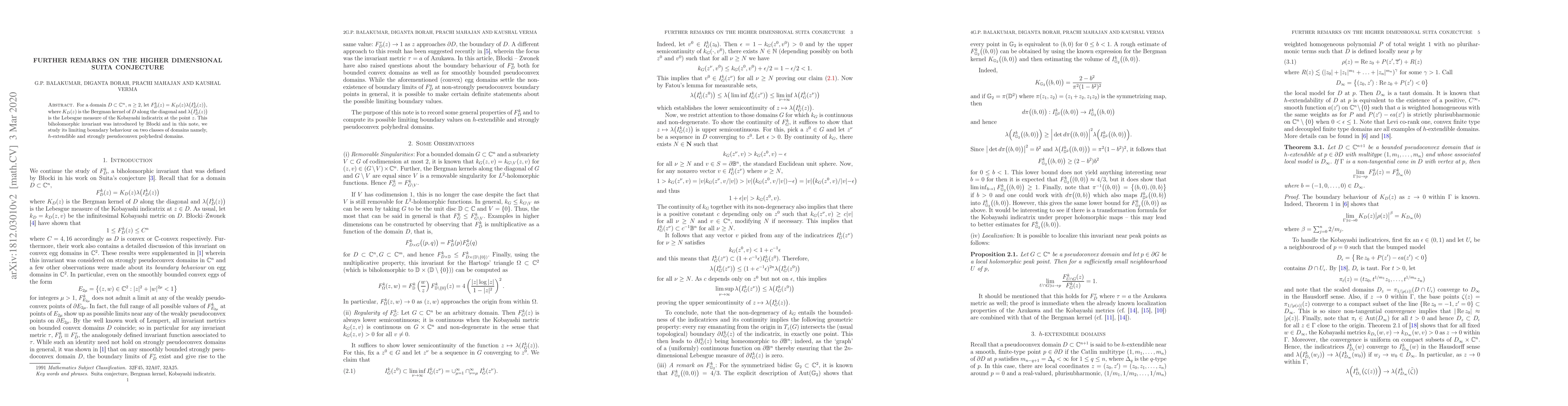 For a domain $D \subset \mathbb C^n$, $n \ge 2$, let $F^k_D(z)=K_D(z)\lambda\big(I^k_D(z)\big)$, where $K_D(z)$ is the Bergman kernel of $D$ along the diagonal and $\lambda\big(I^k_D(z)\big)$ is the Lebesgue measure of the Kobayashi indicatrix at the point $z$. This biholomorphic invariant was introduced by B\locki and in this note, we study its limiting boundary behaviour on two classes of domains namely, $h$-extendible and strongly pseudoconvex polyhedral domains.