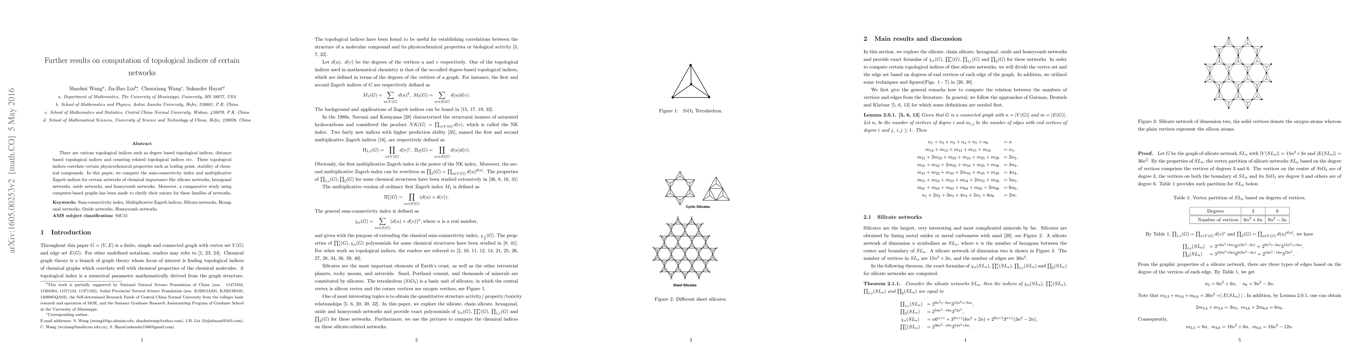This paper computes the sum-connectivity index and multiplicative Zagreb indices for specific chemical networks, including silicate, hexagonal, oxide, and honeycomb networks, and conducts a comparative study to understand their physicochemical properties. The findings provide insights into the correlation between these topological indices and properties like boiling point and stability.
