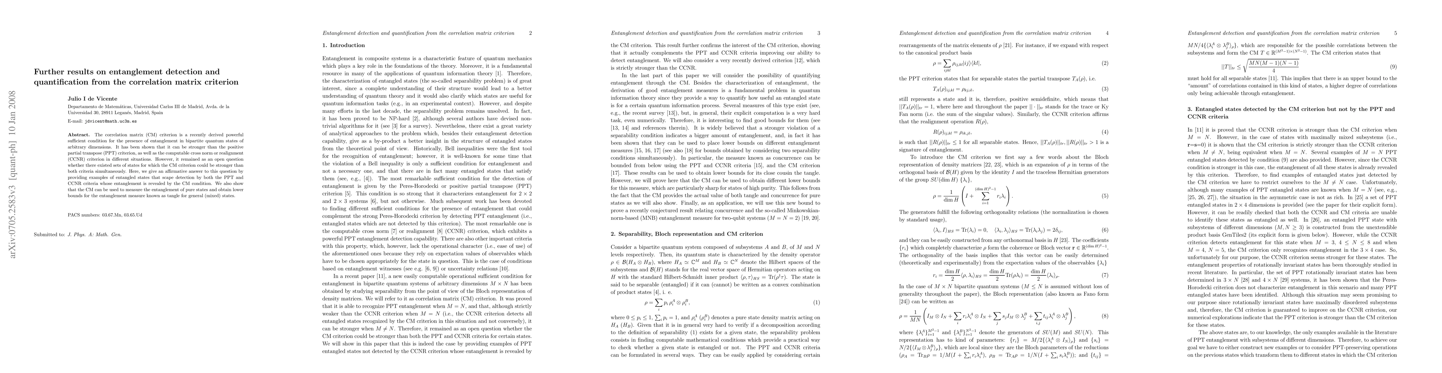 This paper demonstrates that the correlation matrix (CM) criterion can detect entanglement in bipartite quantum states that evade both the positive partial transpose (PPT) and computable cross norm or realignment (CCNR) criteria. It also shows how the CM criterion can quantify entanglement, providing lower bounds for the tangle measure in mixed states.