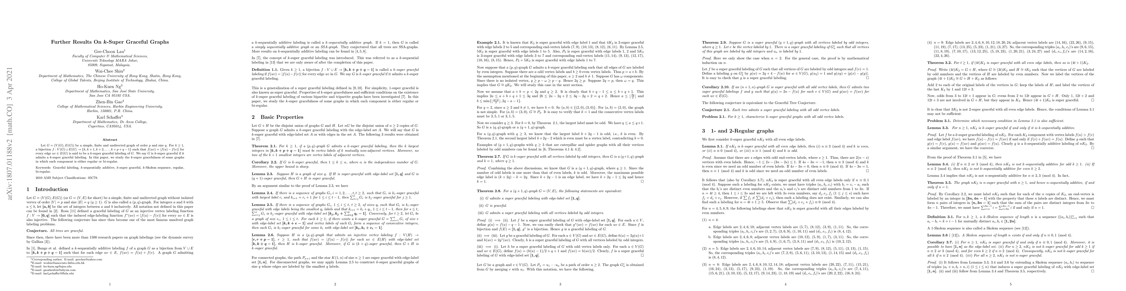 This paper investigates the $k$-super graceful labeling of graphs where each component is either regular or bi-regular, defining a $k$-super graceful labeling and exploring the conditions under which such labelings exist.