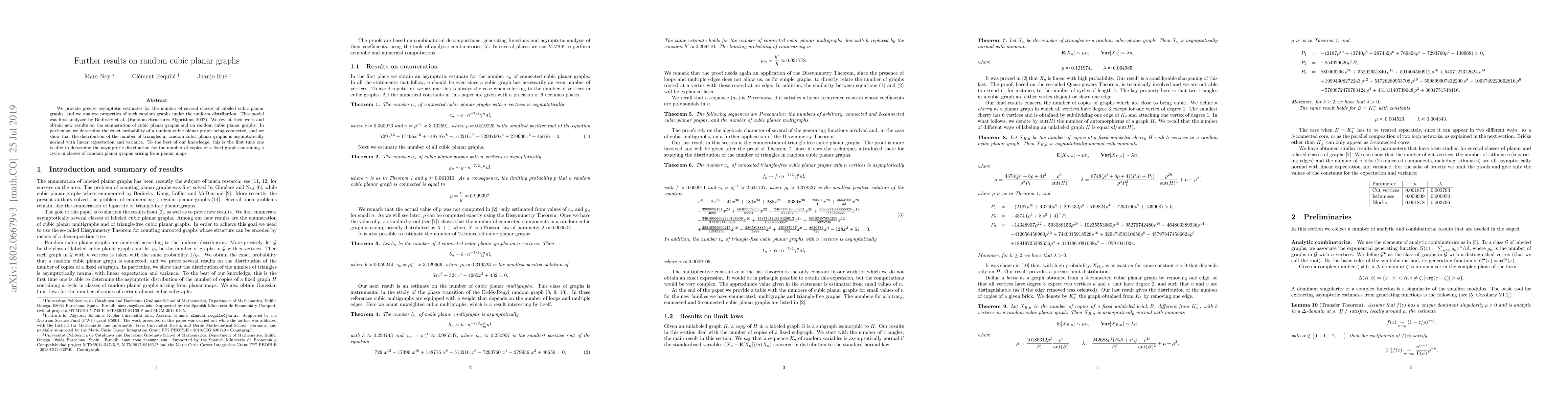This paper provides precise asymptotic estimates for labelled cubic planar graphs and analyzes their properties under uniform distribution. It determines the exact probability of connectivity and shows that the distribution of triangle counts is asymptotically normal with linear mean and variance.