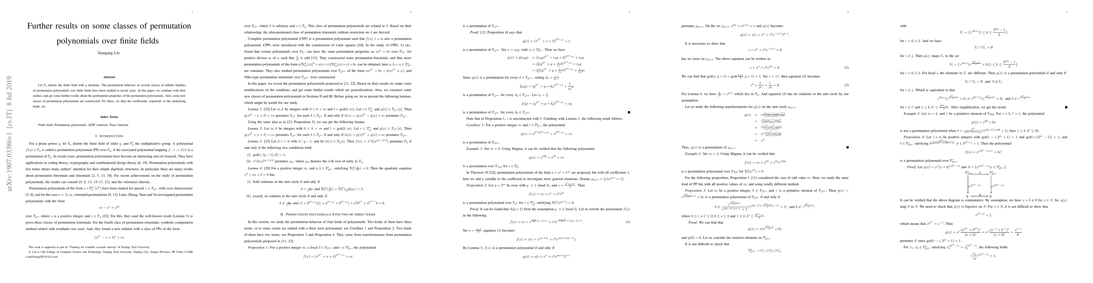This paper investigates the permutation properties of various classes of permutation polynomials over finite fields, providing new results and constructing additional classes by altering coefficients, exponents, and underlying fields. It builds on recent studies in this area.