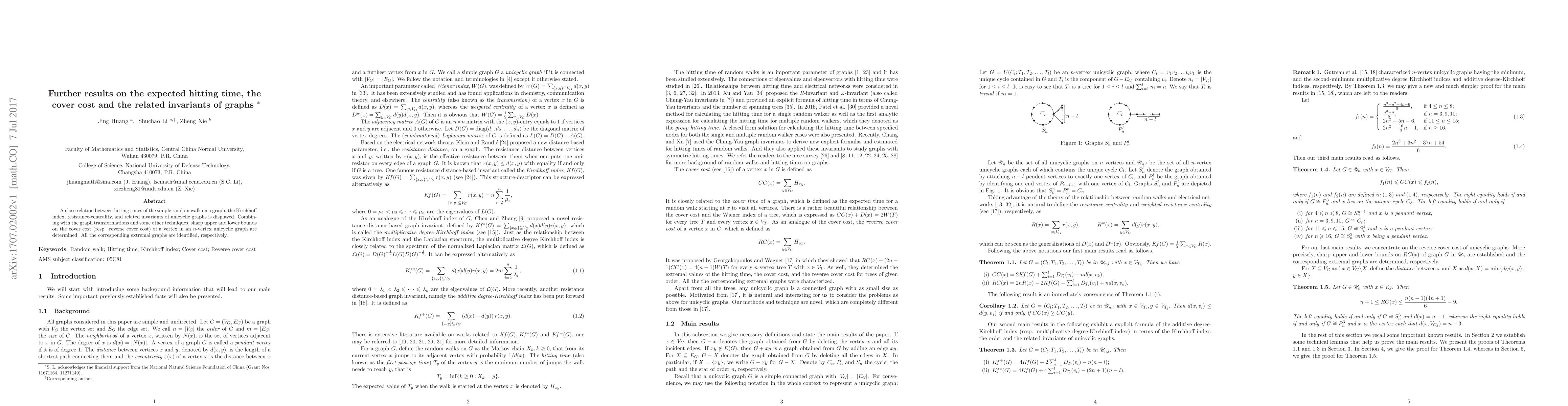 This paper explores the connection between hitting times in random walks, graph invariants like the Kirchhoff index, and resistance-centrality in unicyclic graphs. It determines sharp bounds for the cover cost and reverse cover cost, and identifies the extremal graphs for these bounds.