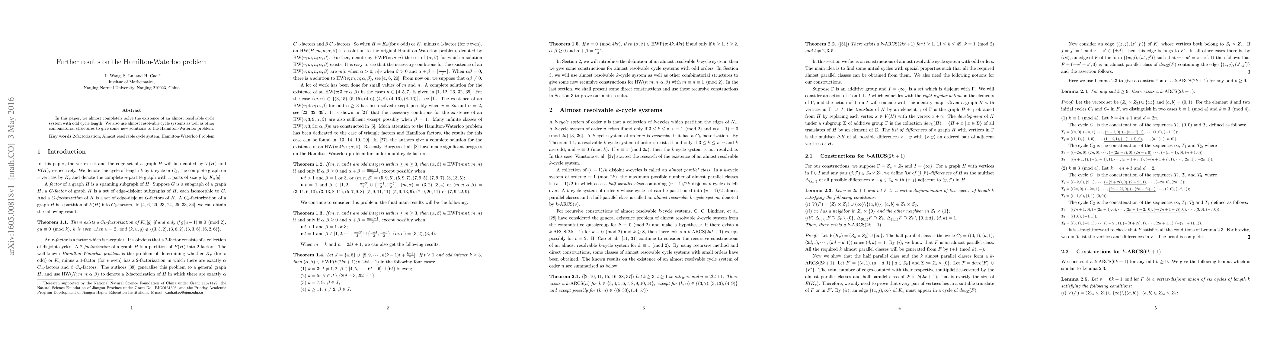 In this paper, we almost completely solve the existence of an almost resolvable cycle system with odd cycle length. We also use almost resolvable cycle systems as well as other combinatorial structures to give some new solutions to the Hamilton-Waterloo problem.