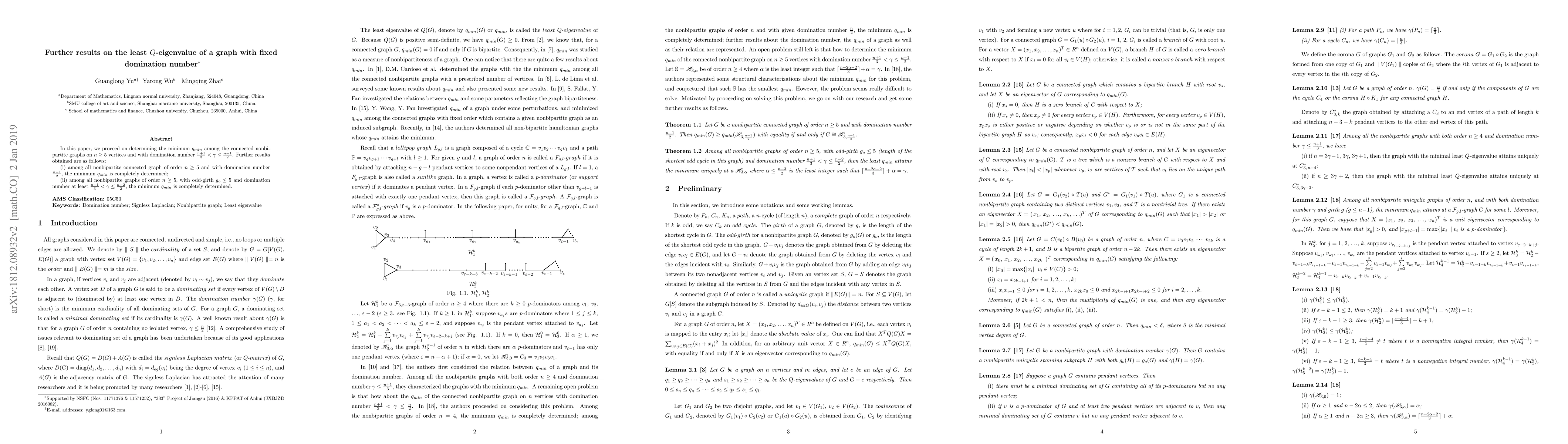In this paper, we proceed on determining the minimum $q_{min}$ among the connected nonbipartite graphs on $n\geq 5$ vertices and with domination number $\frac{n+1}{3}<\gamma\leq \frac{n-1}{2}$. Further results obtained are as follows: $\mathrm{(i)}$ among all nonbipartite connected graph of order $n\geq 5$ and with domination number $\frac{n-1}{2}$, the minimum $q_{min}$ is completely determined; $\mathrm{(ii)}$ among all nonbipartite graphs of order $n\geq 5$, with odd-girth $g_{o}\leq5$ and domination number at least $\frac{n+1}{3}<\gamma\leq \frac{n-2}{2}$, the minimum $q_{min}$ is completely determined.